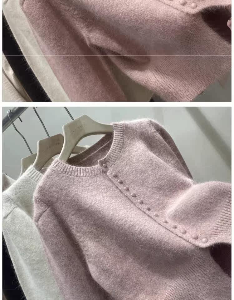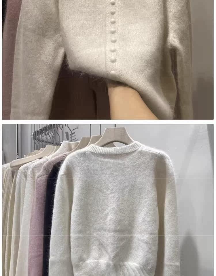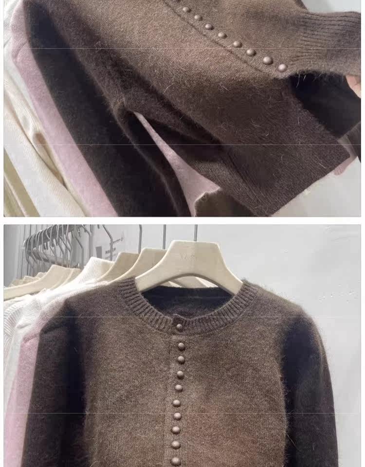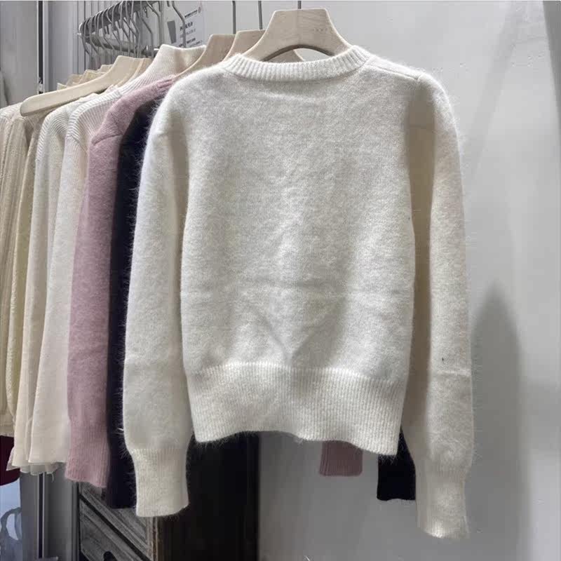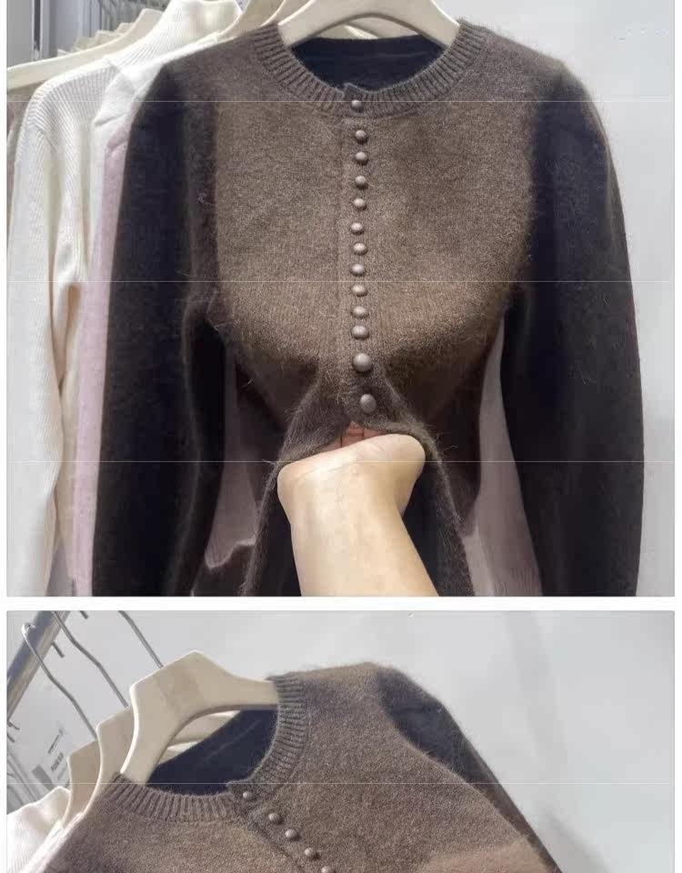 Базовый приятный телу свитер, демисезонный шерстяной кардиган, куртка, рукава фонарики, изысканный стиль, увеличенная толщина
