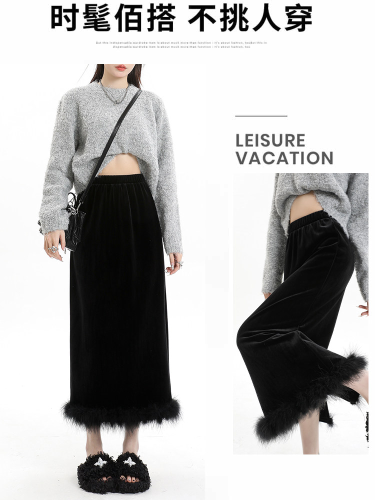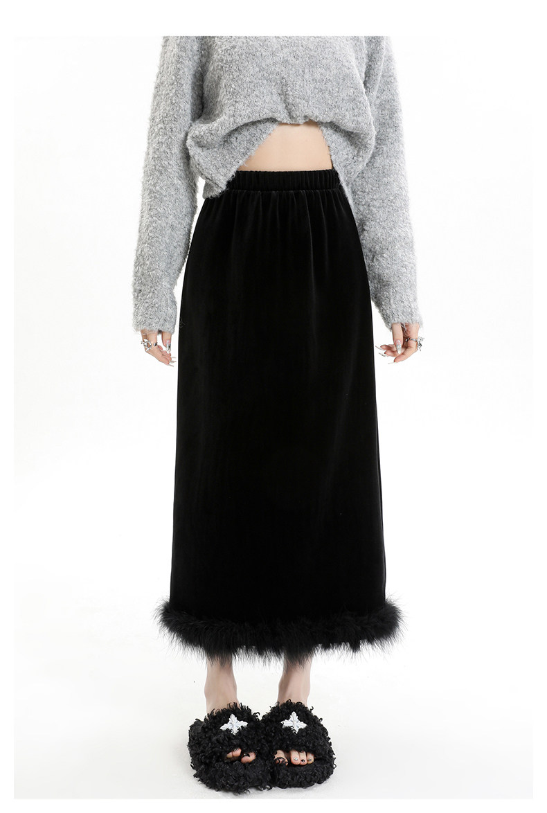 Черная бархатная летняя юбка, высокая талия, А-силуэт