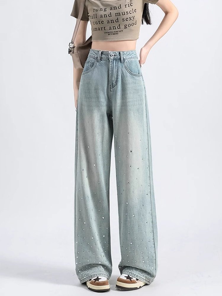 Синие джинсы, дизайнерские штаны, высокая талия, тренд сезона, свободный прямой крой