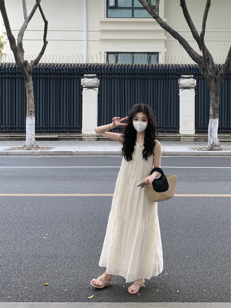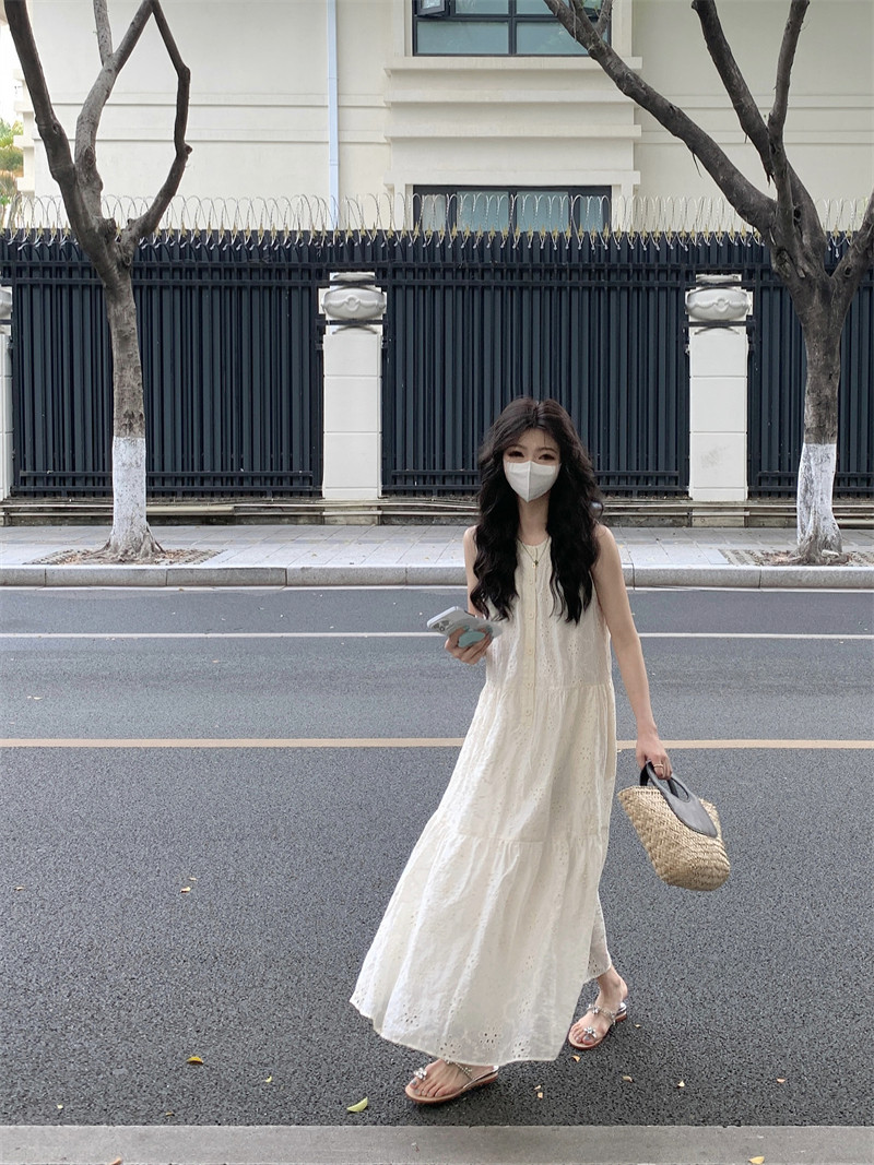 Летнее платье, дизайнерская длинная юбка, французский стиль, городской стиль, тренд сезона