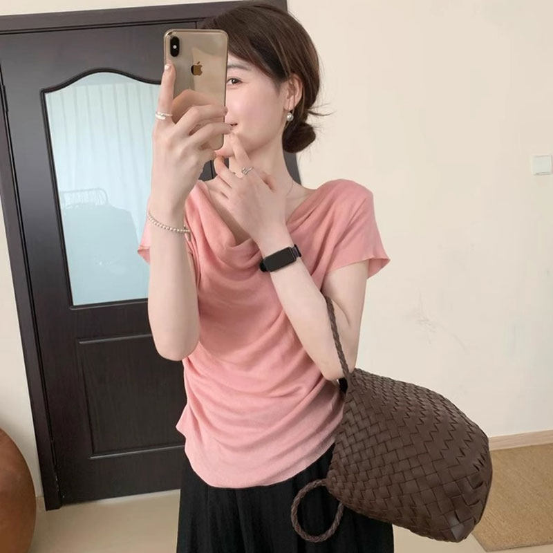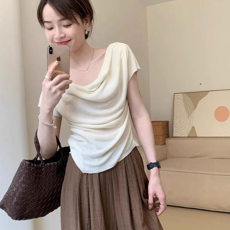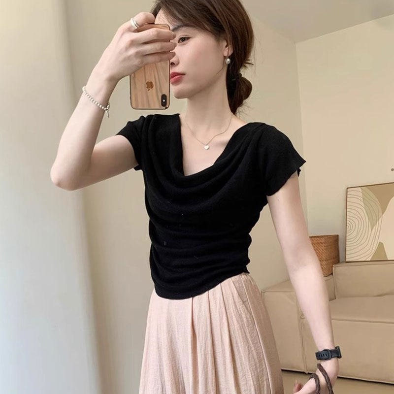 Летняя футболка с коротким рукавом, тонкий корсет, короткая маска для лица, французский стиль