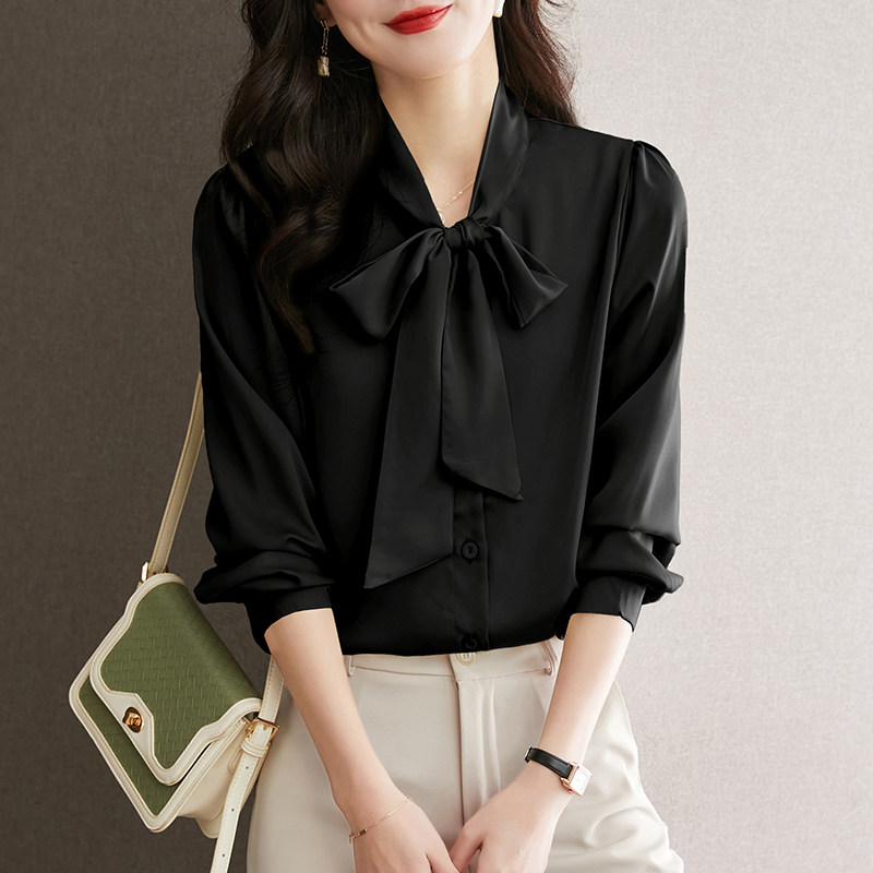 Синяя летняя рубашка с бантиком, шифоновый лонгслив, 2025 года, премиум класс