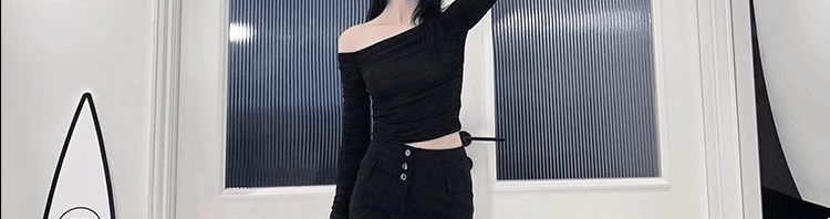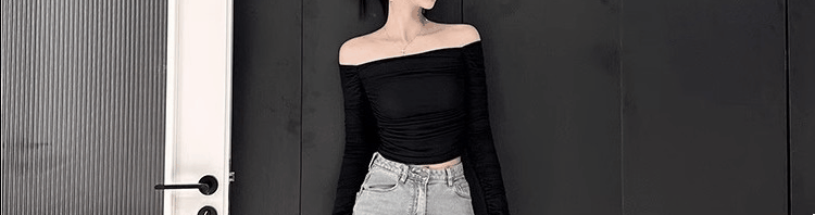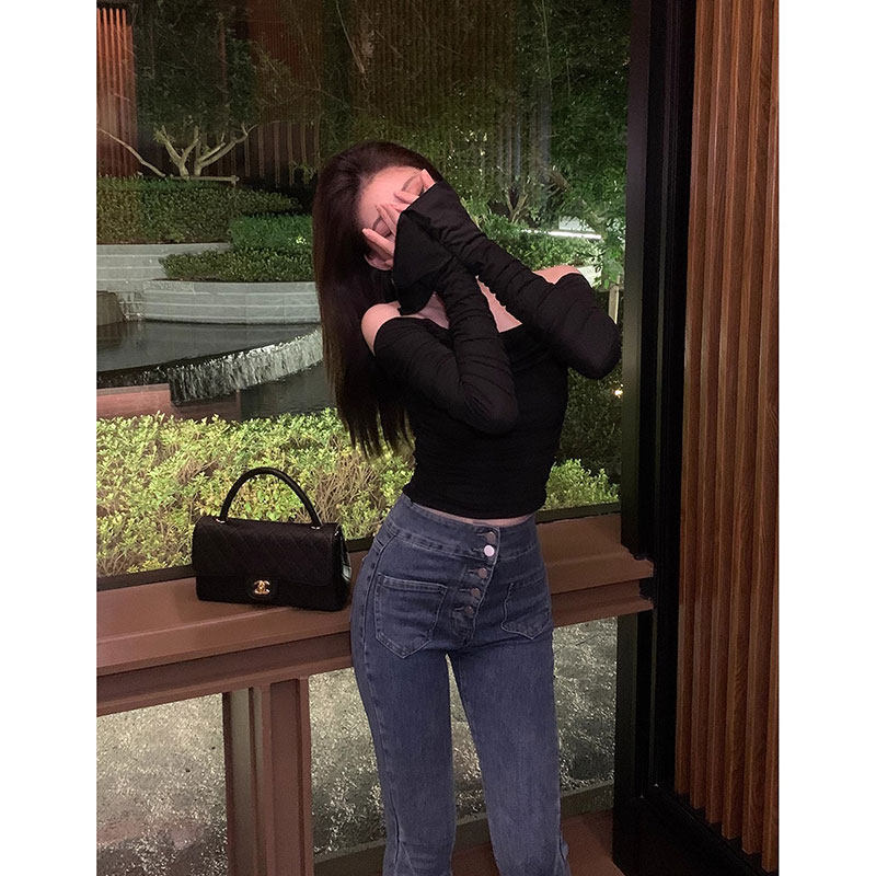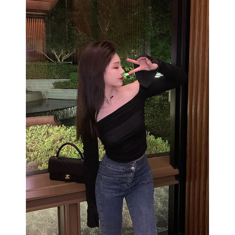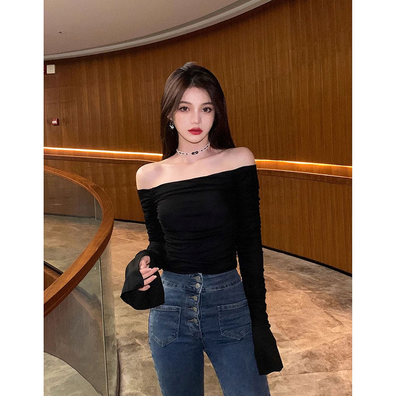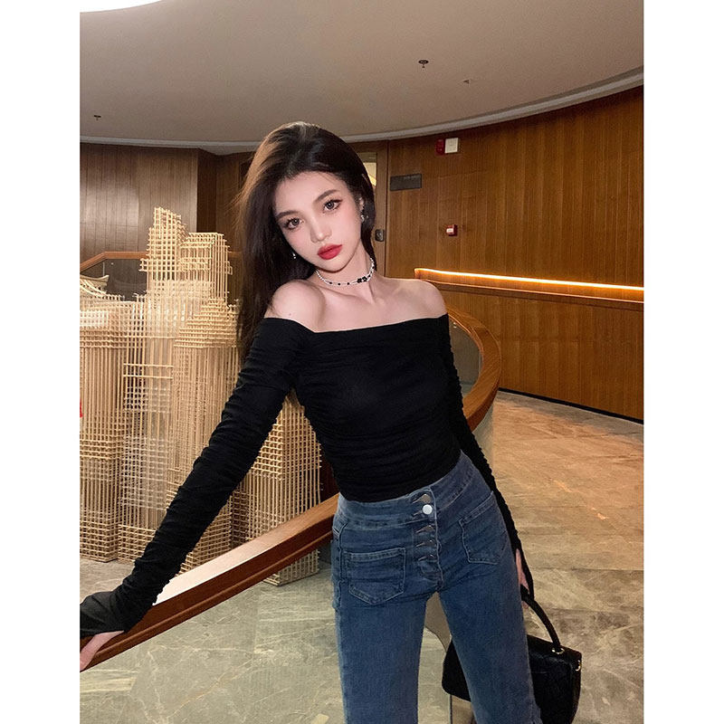 Базовый приятный телу осенний лонгслив, открытые плечи, облегающий крой, французский стиль