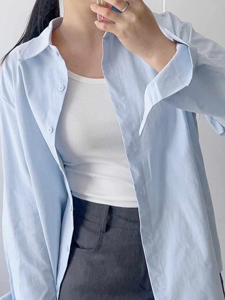 Синий лонгслив, летняя рубашка, тонкая куртка, защита от солнца, 2025 года, оверсайз