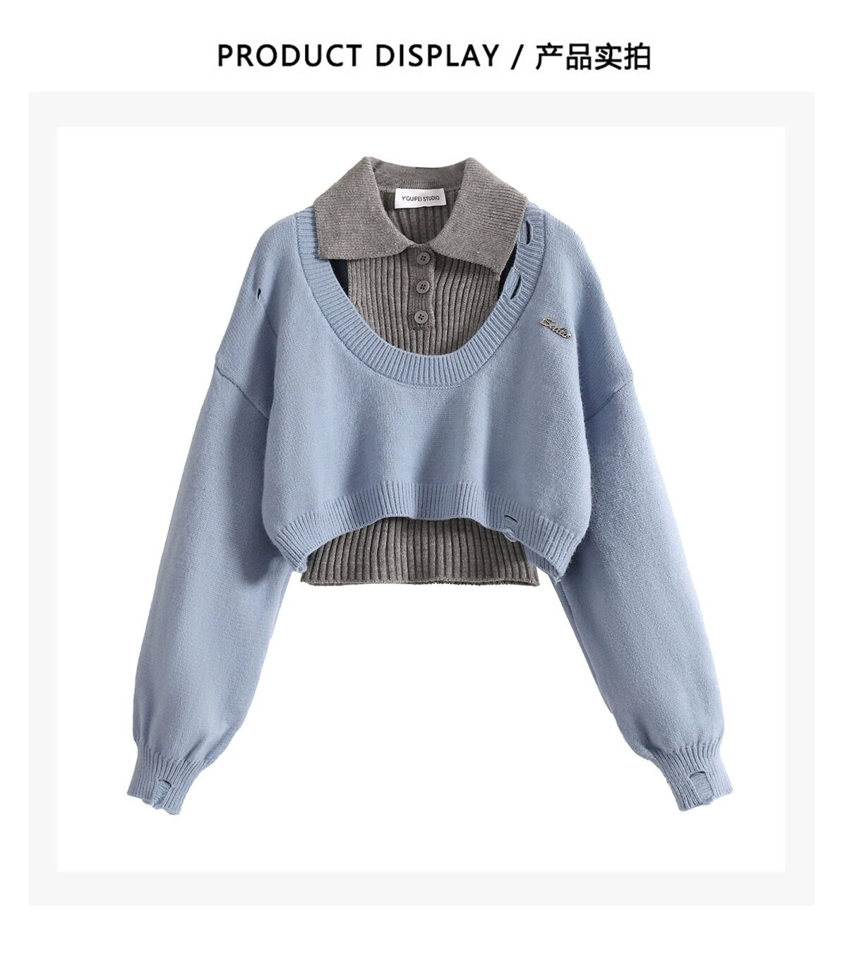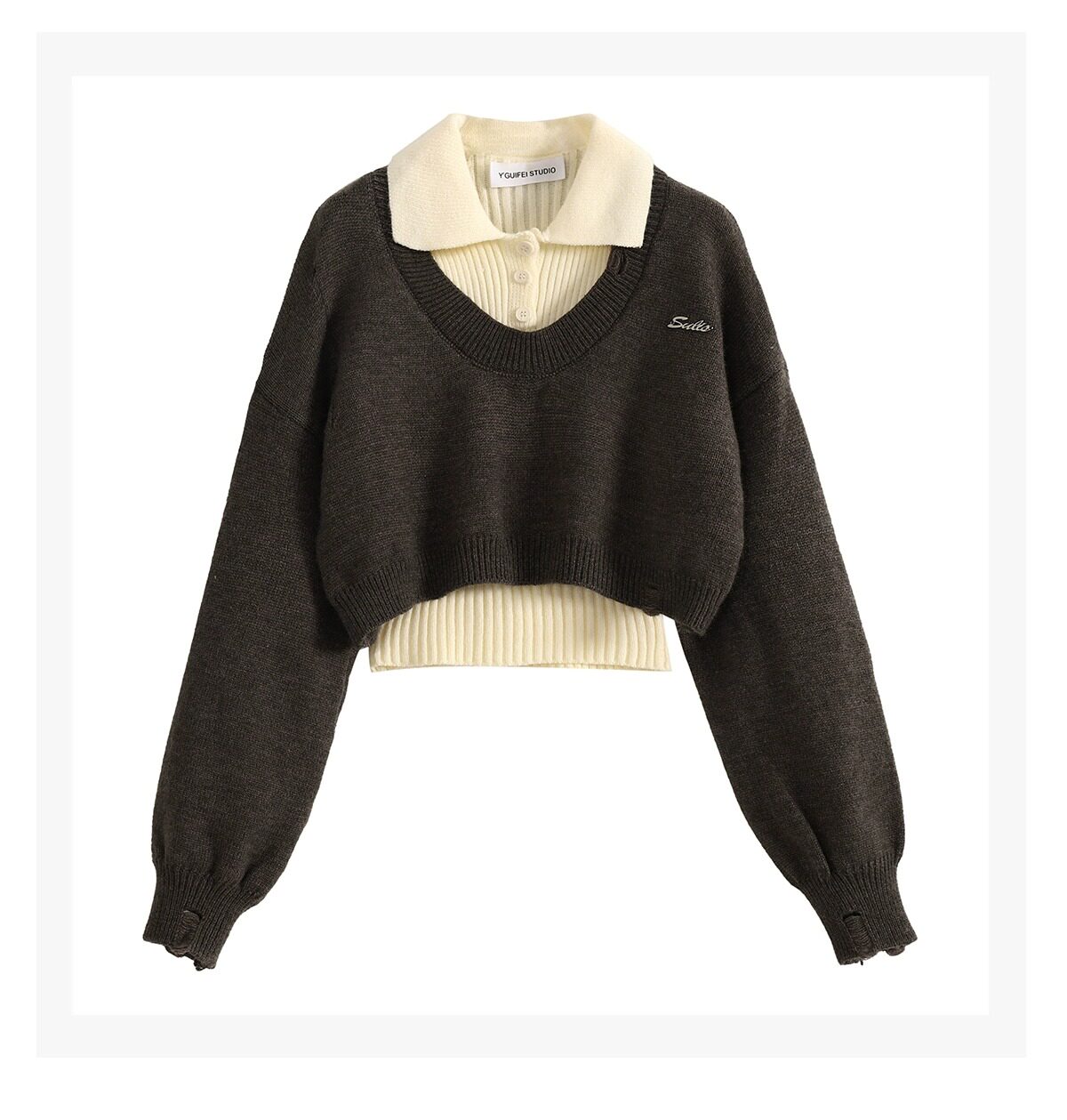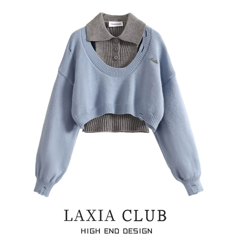 Трикотажный свитер, короткий лонгслив, воротник поло