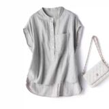 Ретро летняя рубашка без рукавов для отдыха, французский стиль, свободный крой, из хлопка и льна