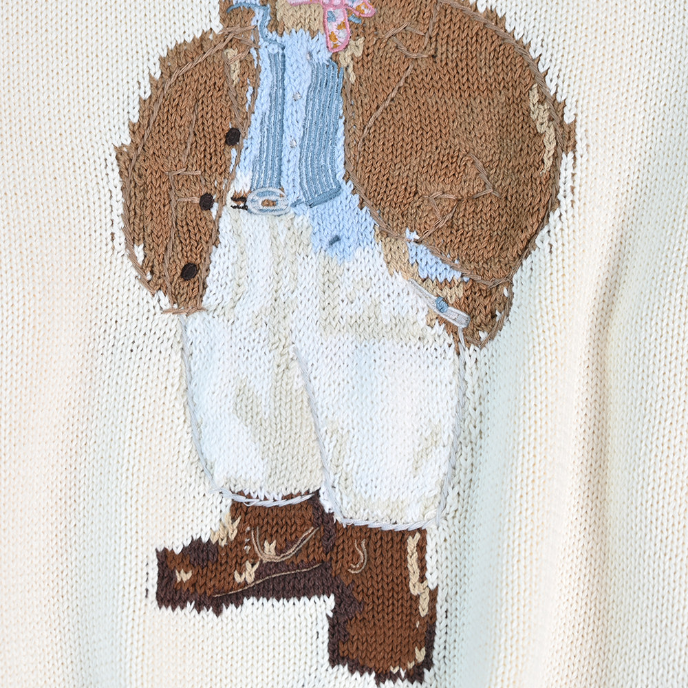 Siqi женский 2512/15 американский мультяшный медведь толстая игла хлопчатобумажная нить круглый вырез с длинными рукавами вязаный свитер