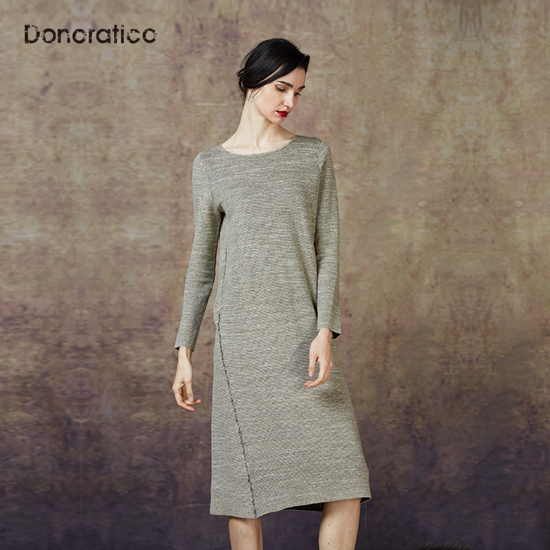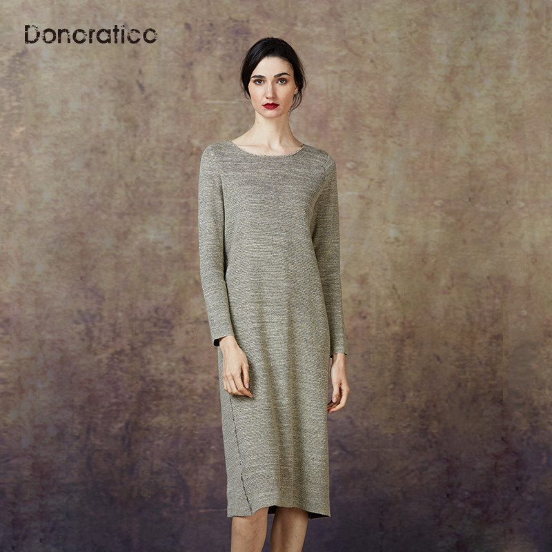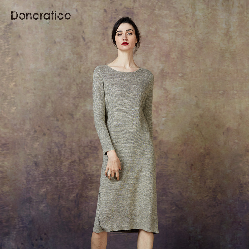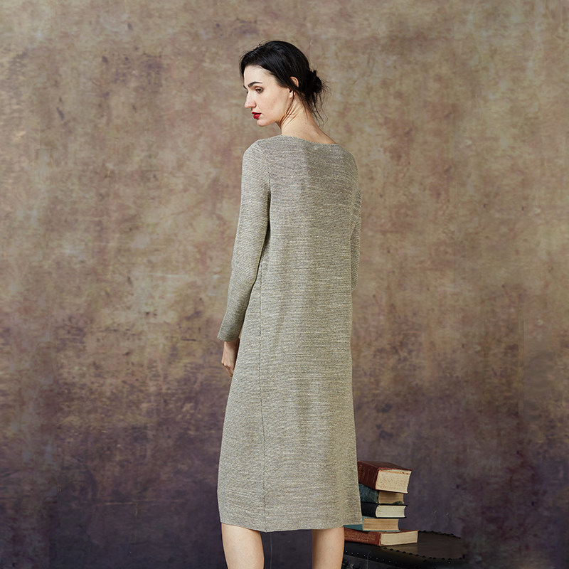 Весенний ретро элегантный комфортный длинный свитер, из хлопка и льна, средней длины