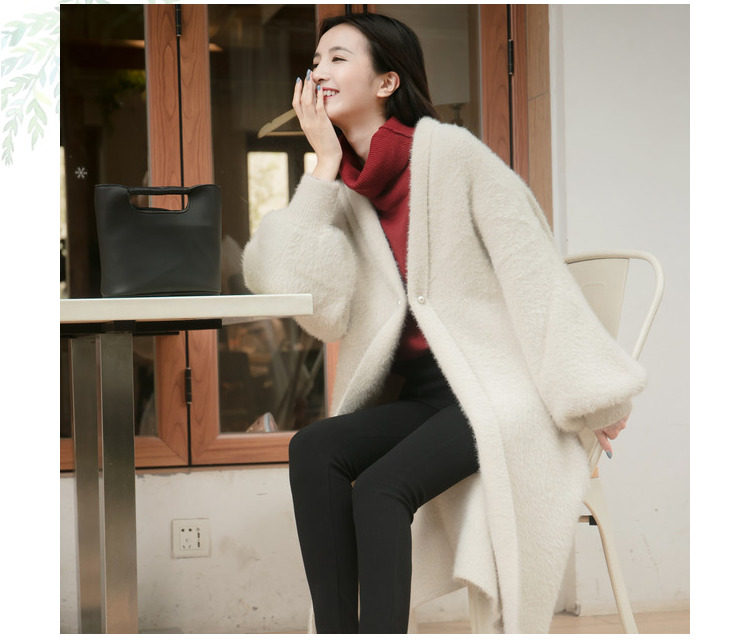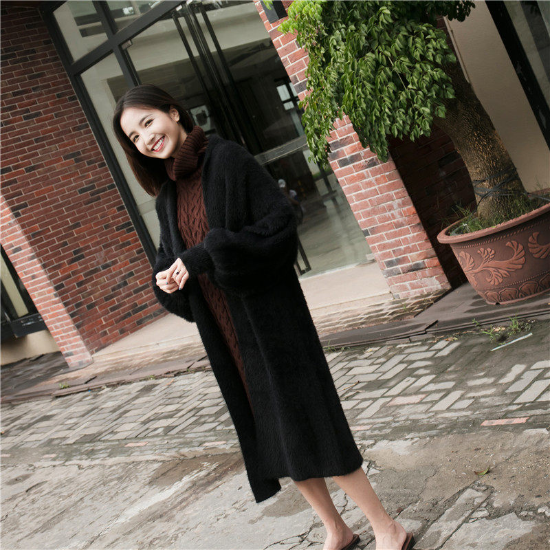Демисезонный длинный фонарь, бархатный свитер, трикотажная куртка, в корейском стиле, средней длины, свободный крой, увеличенная толщина