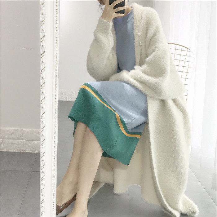 Демисезонный осенний длинный свитер, трикотажный кардиган, куртка, свободный крой, средней длины