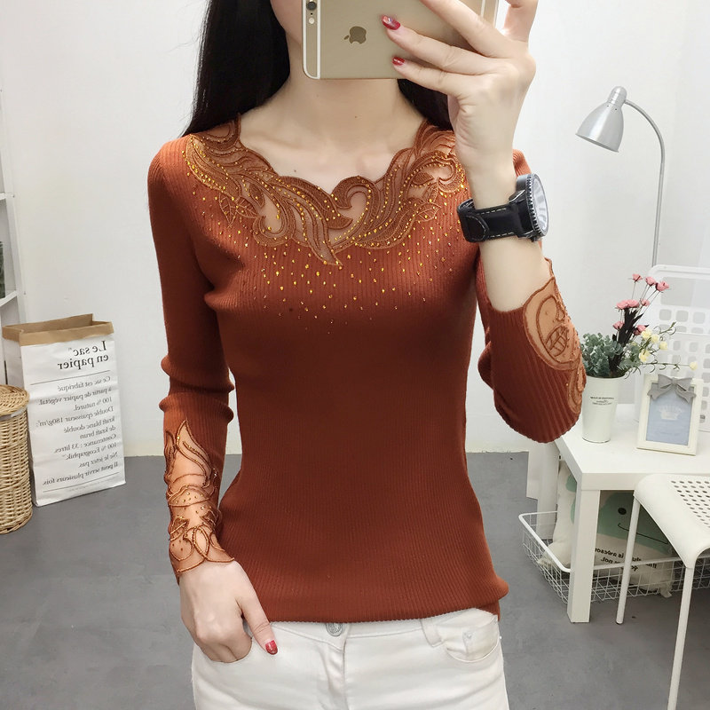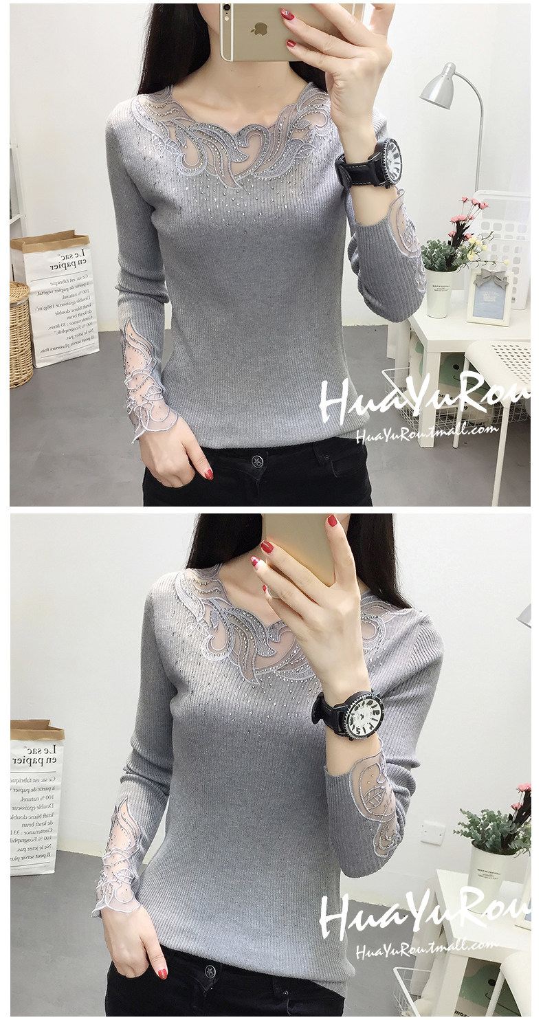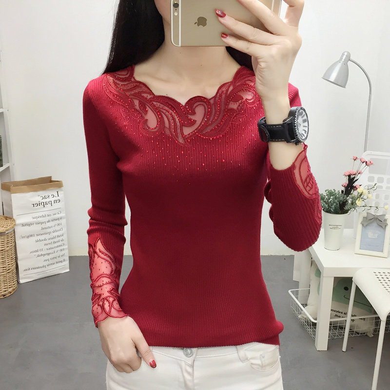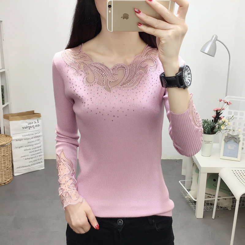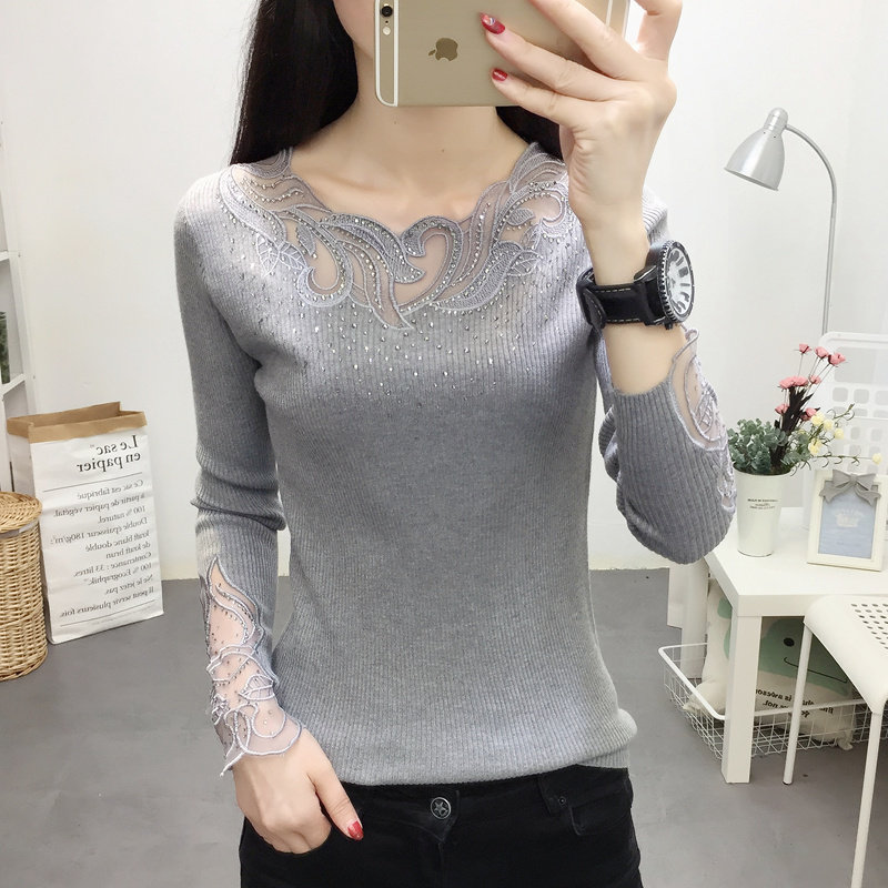 Демисезонный кружевной трикотажный лонгслив с круглым воротником, короткий свитер, городской стиль