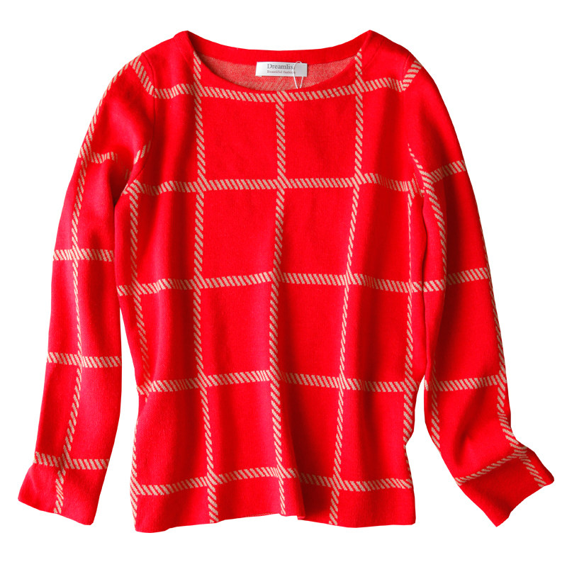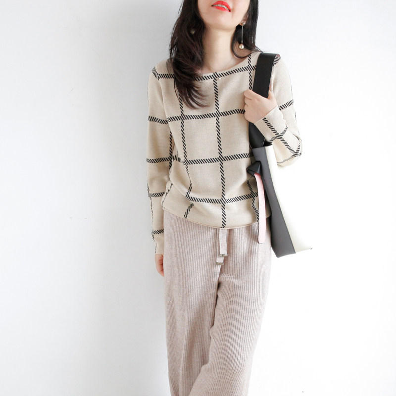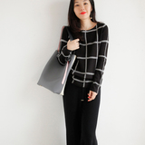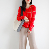 Шерстяной трикотажный свитер с круглым воротником, простой крой