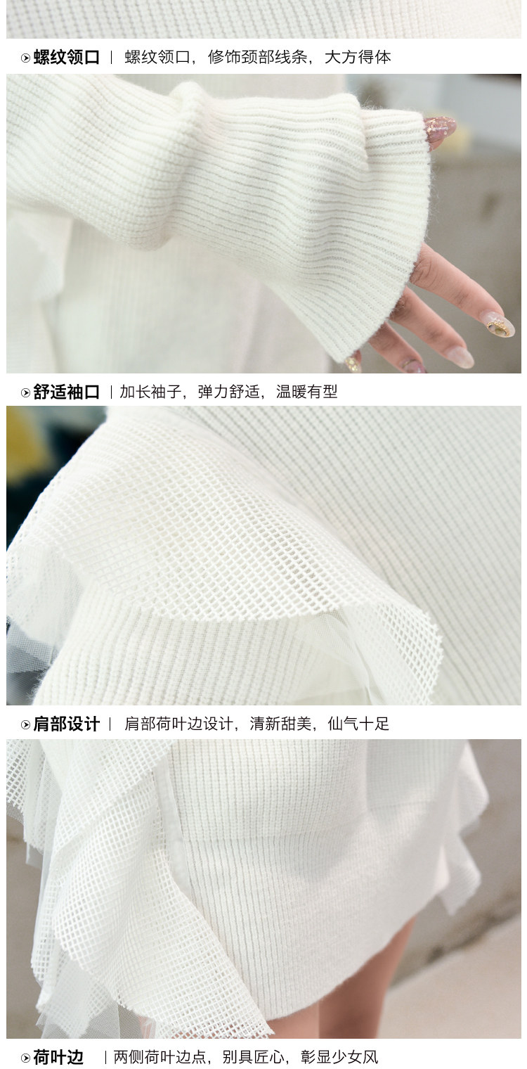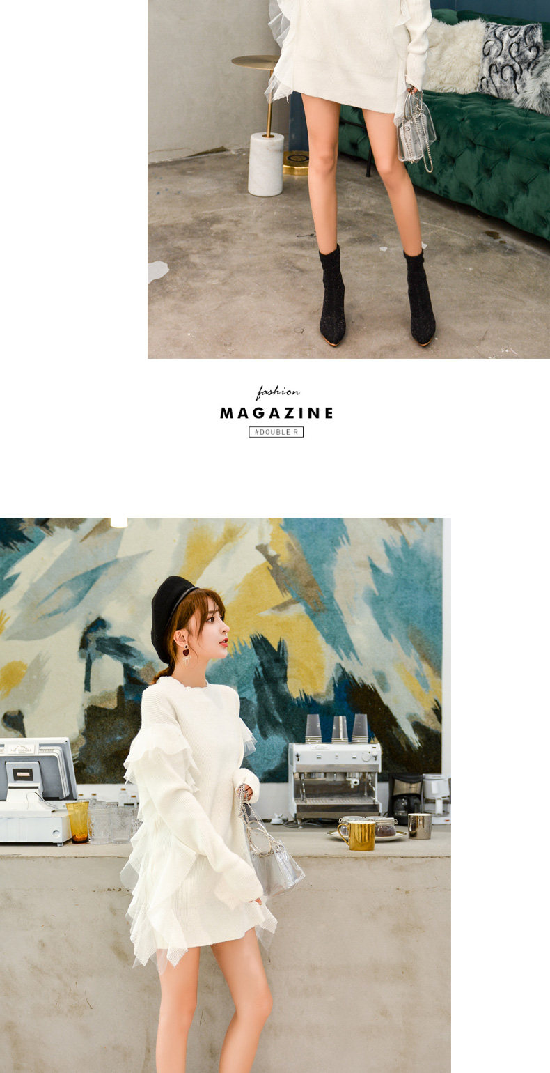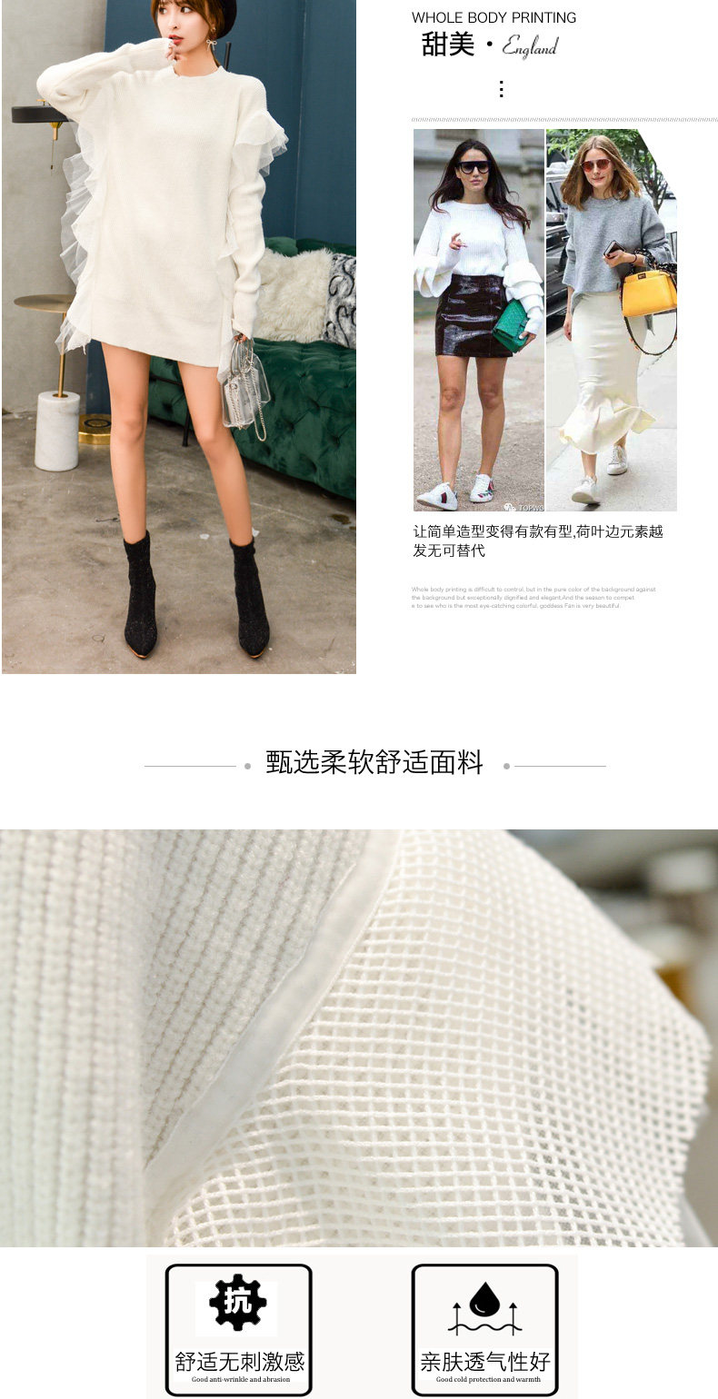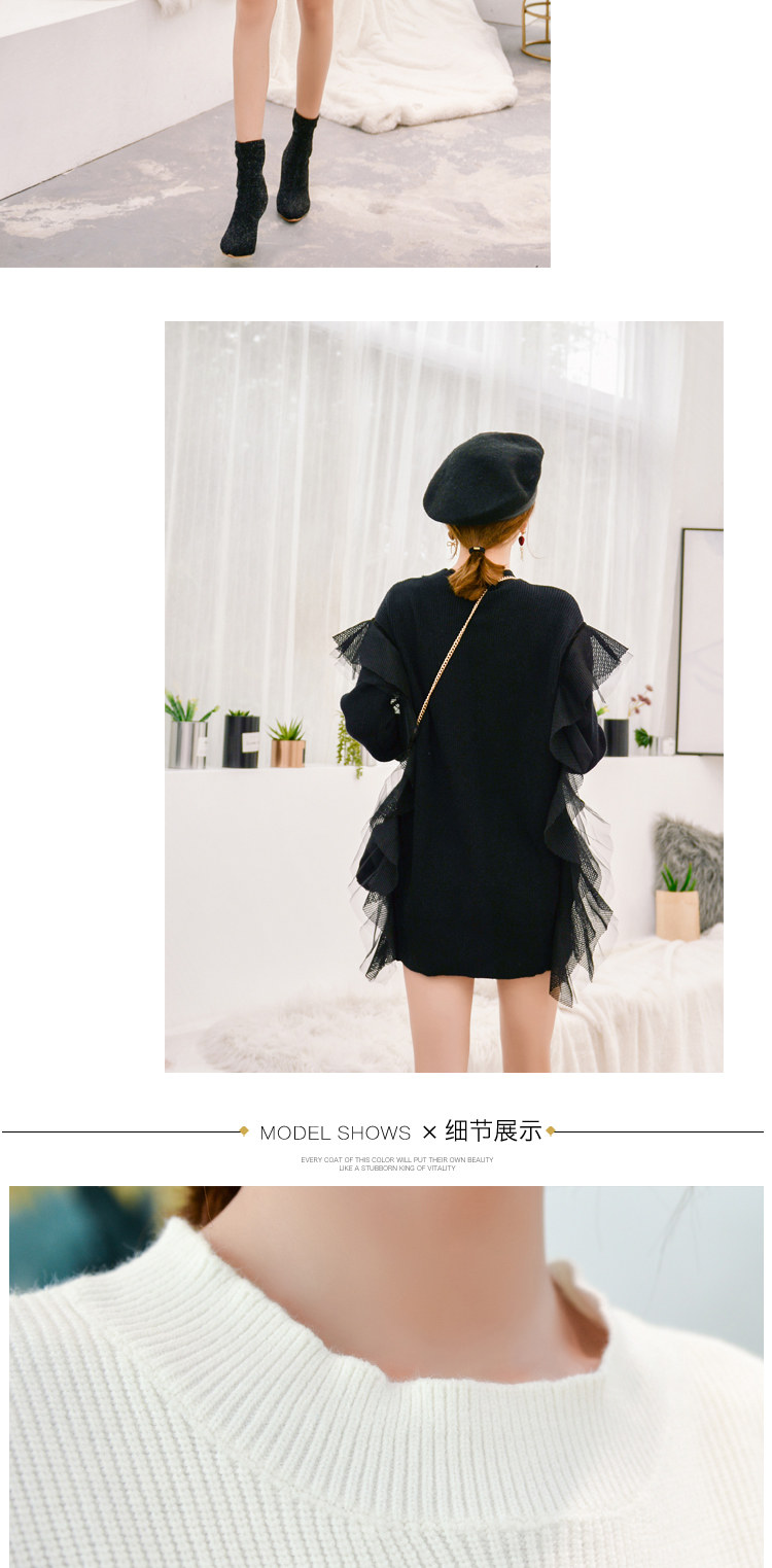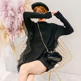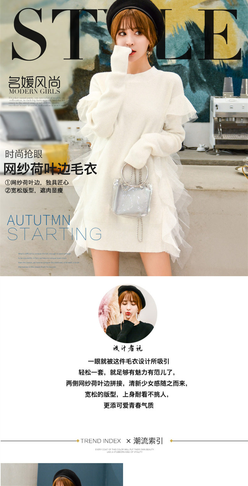 Демисезонный кружевной длинный трикотажный свитер, в корейском стиле, популярно в интернете, средней длины