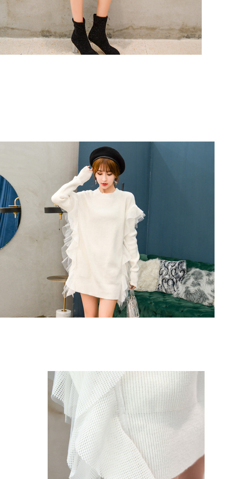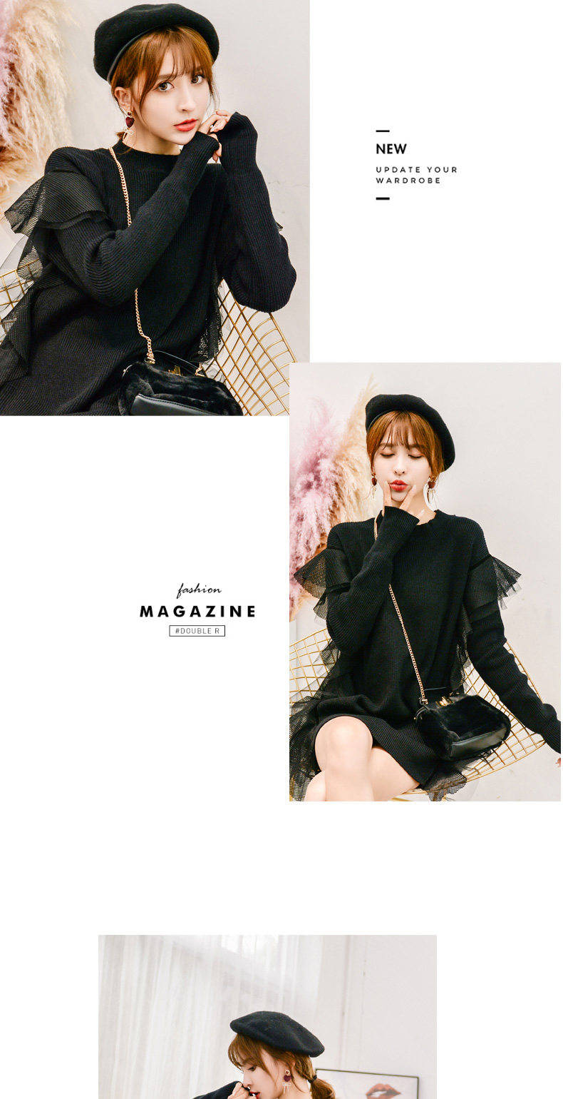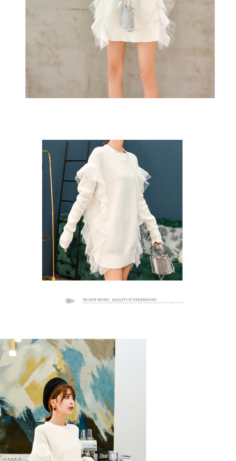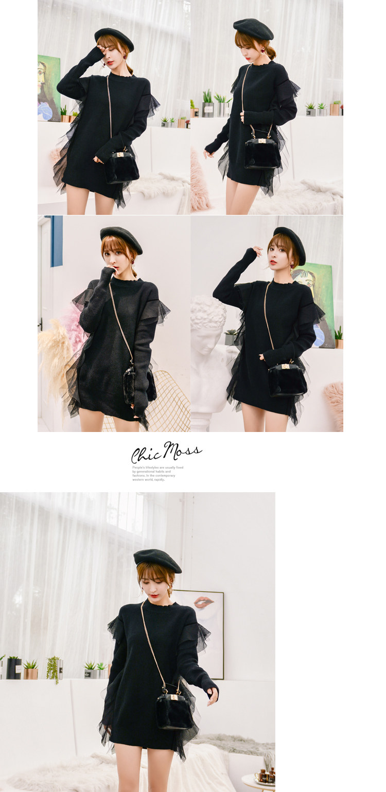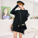 Демисезонный кружевной длинный трикотажный свитер, в корейском стиле, популярно в интернете, средней длины