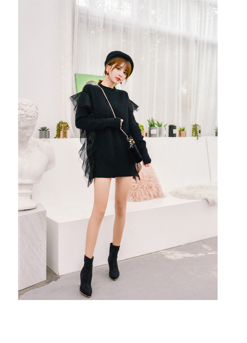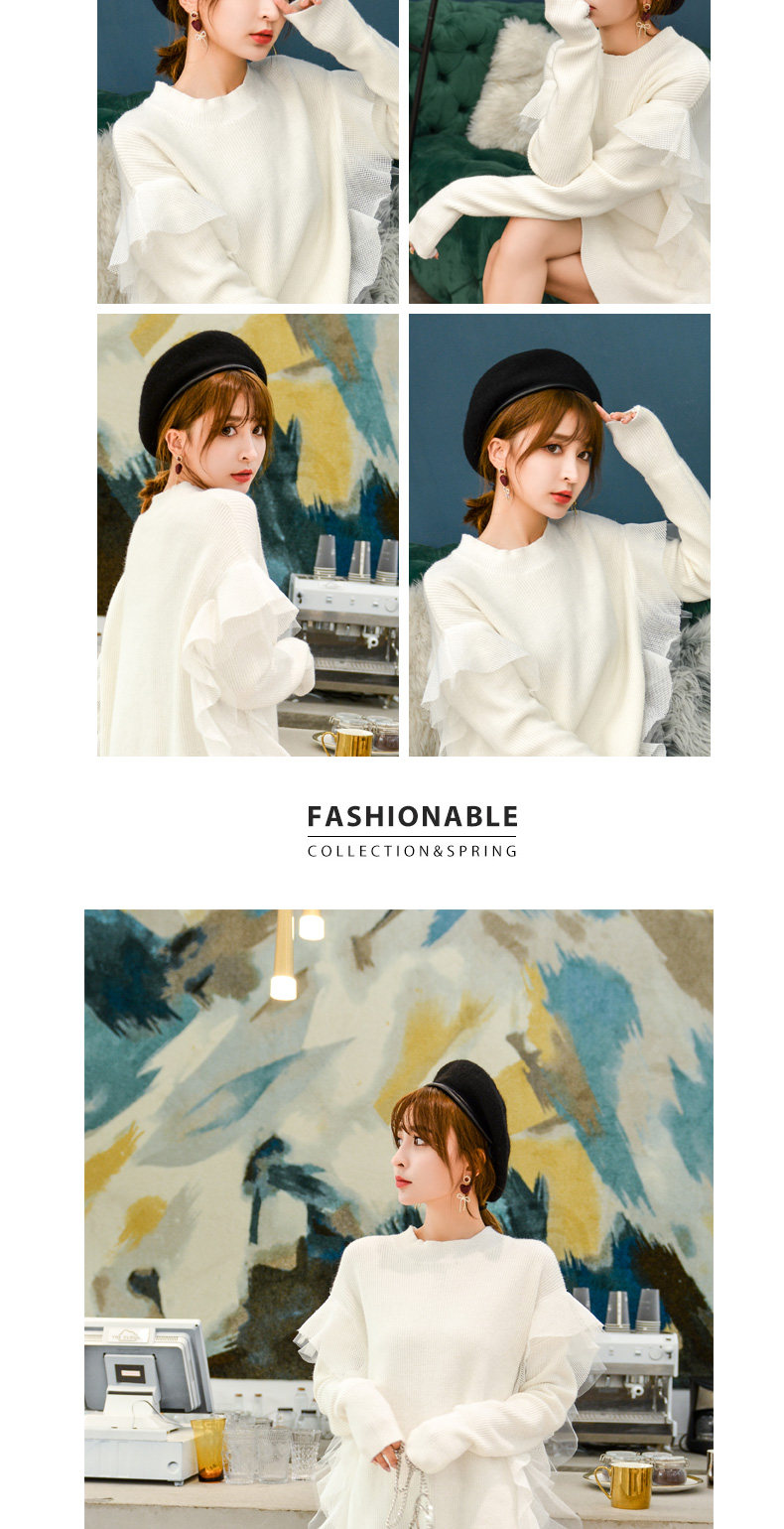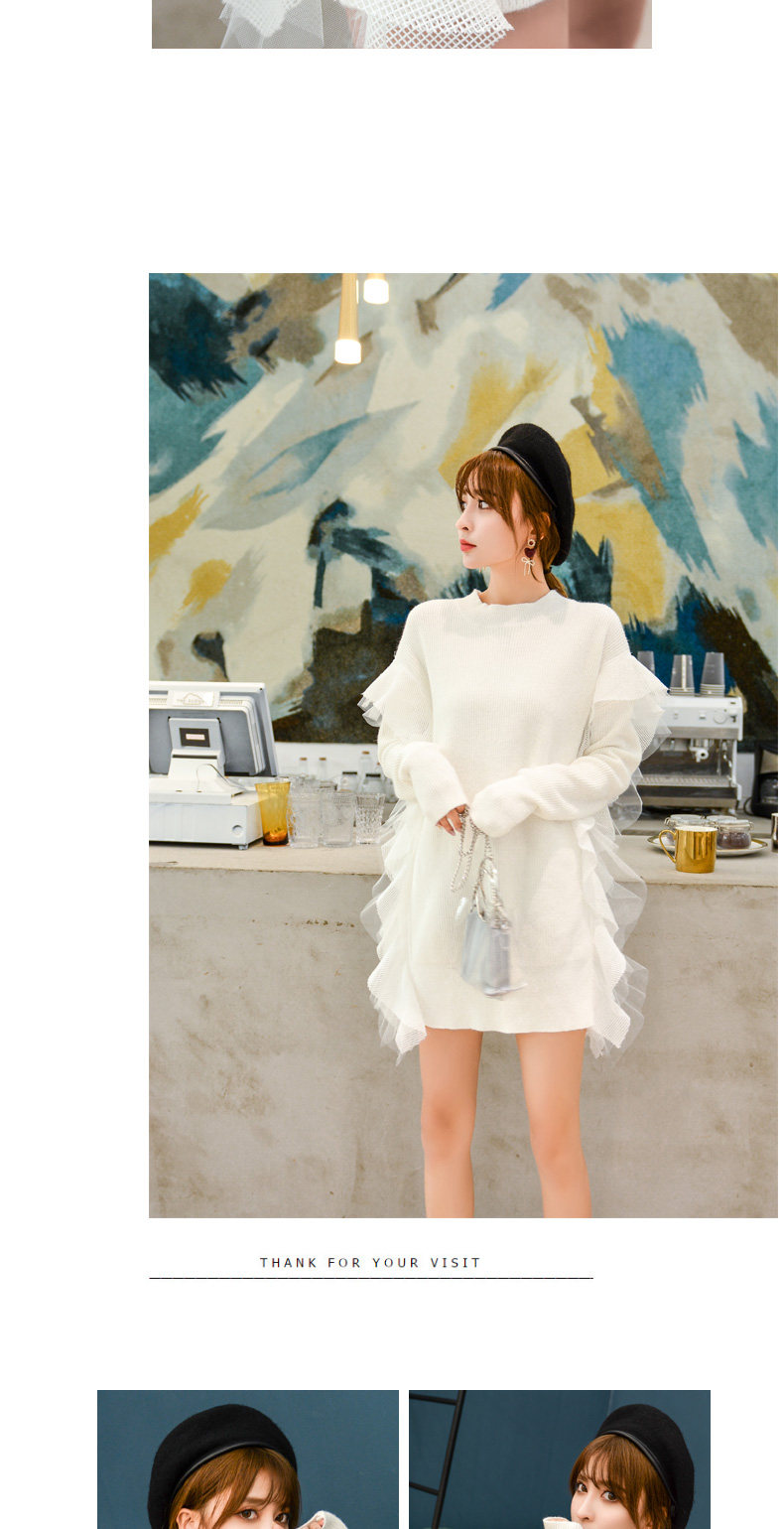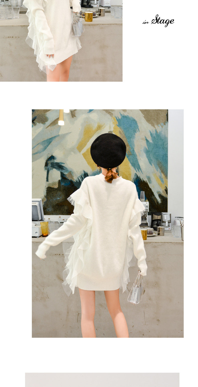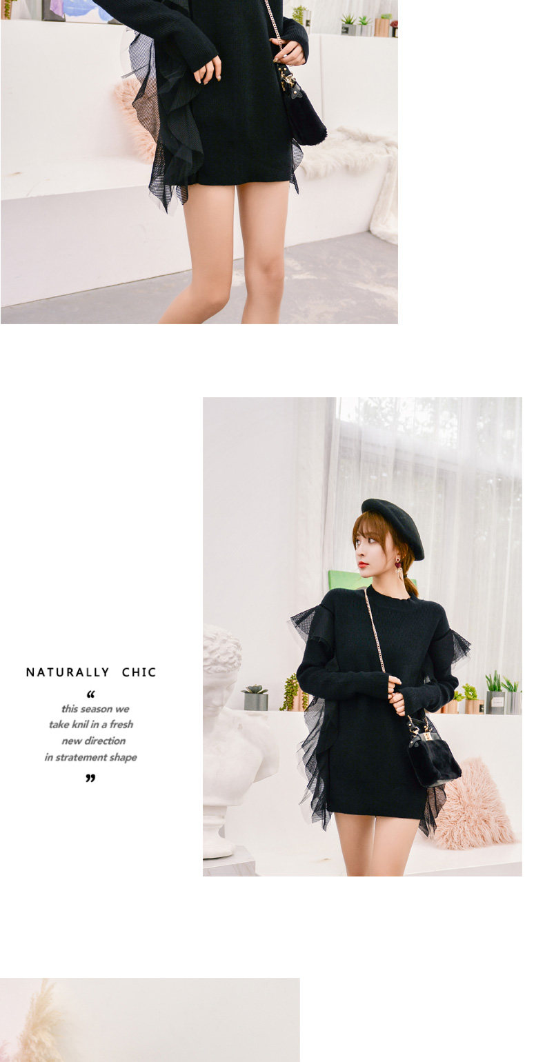 Демисезонный кружевной длинный трикотажный свитер, в корейском стиле, популярно в интернете, средней длины