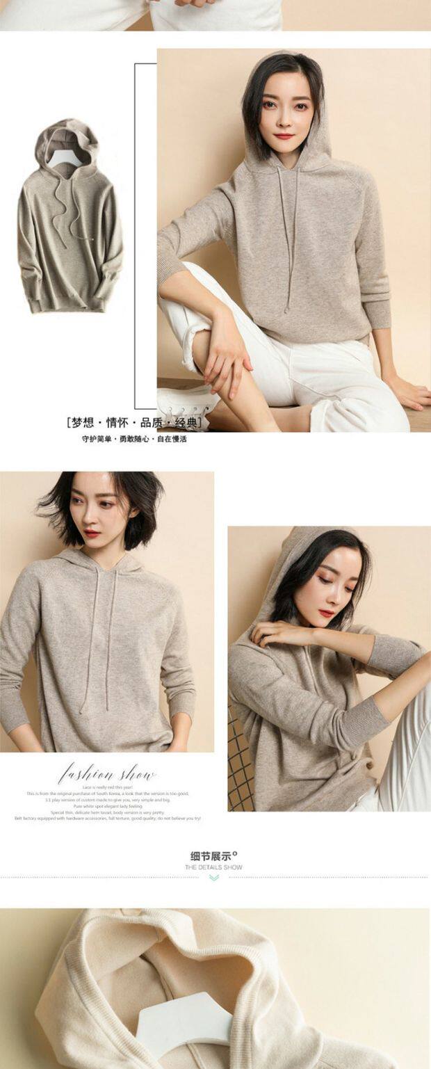 Демисезонная кашемировая толстовка с капюшоном, трикотажный свитер, балахон, базовая рубашка, куртка, большой размер
