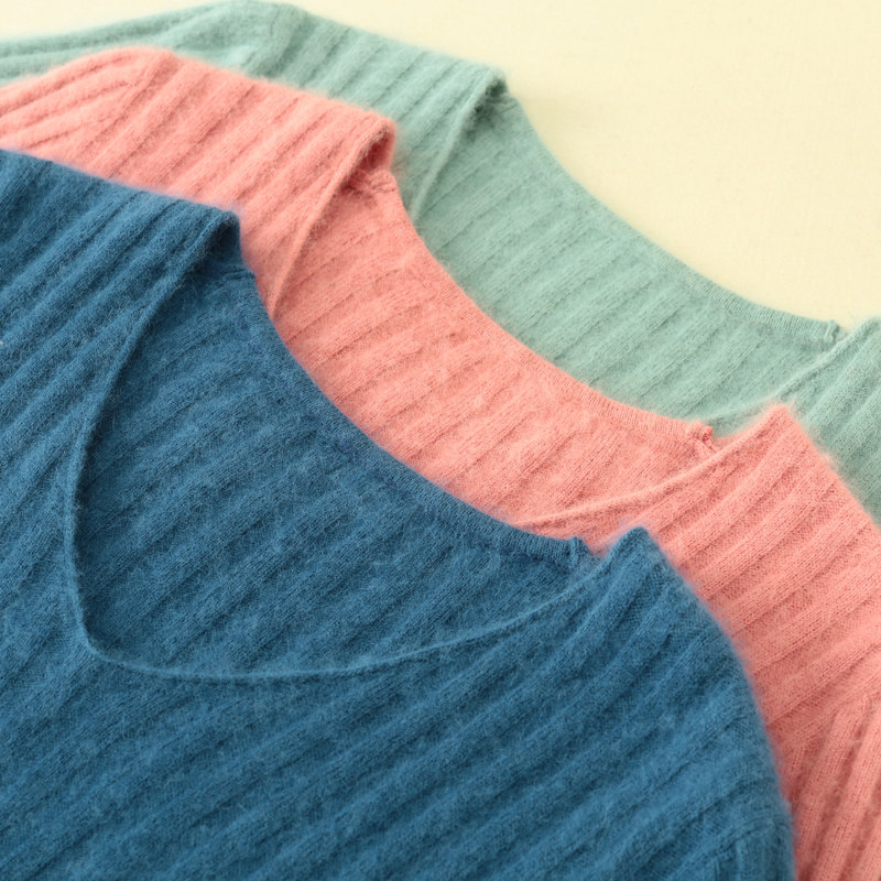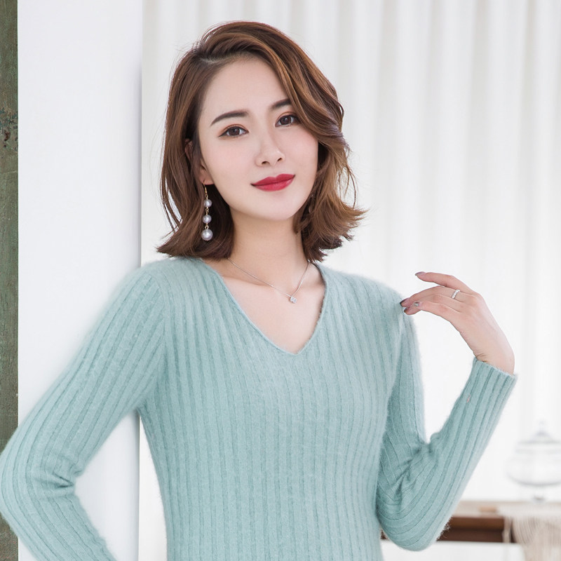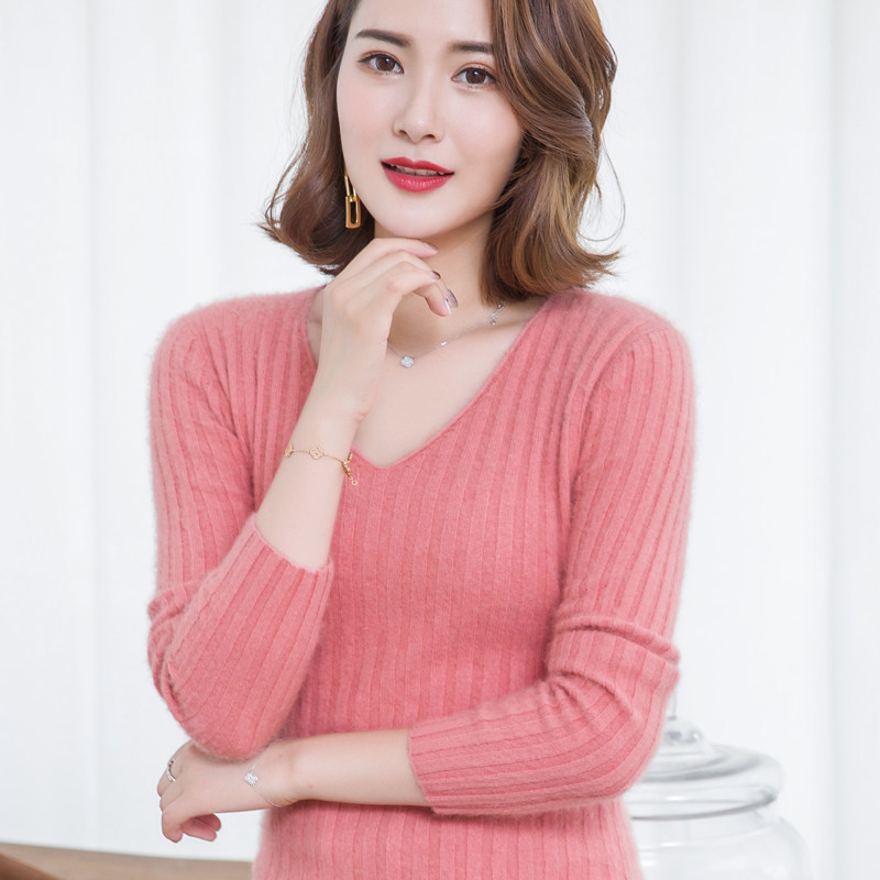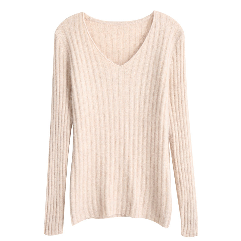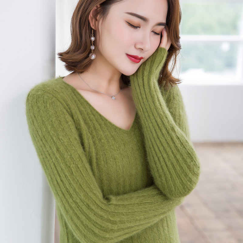 Демисезонный пуховик, бархатный шерстяной трикотажный кашемировый базовый свитер, V-образный вырез, увеличенная толщина, большой размер
