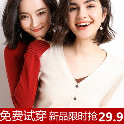 Осенний трикотажный свитер, лонгслив, короткий кардиган, куртка, большой размер, V-образный вырез