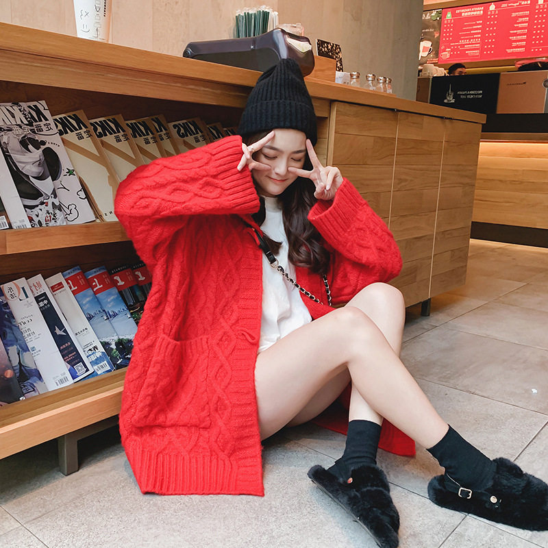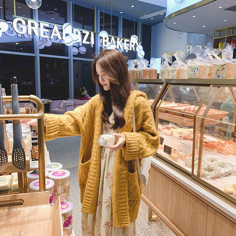 Шерстяной длинный кардиган, японский свитер, толстовка с капюшоном, куртка