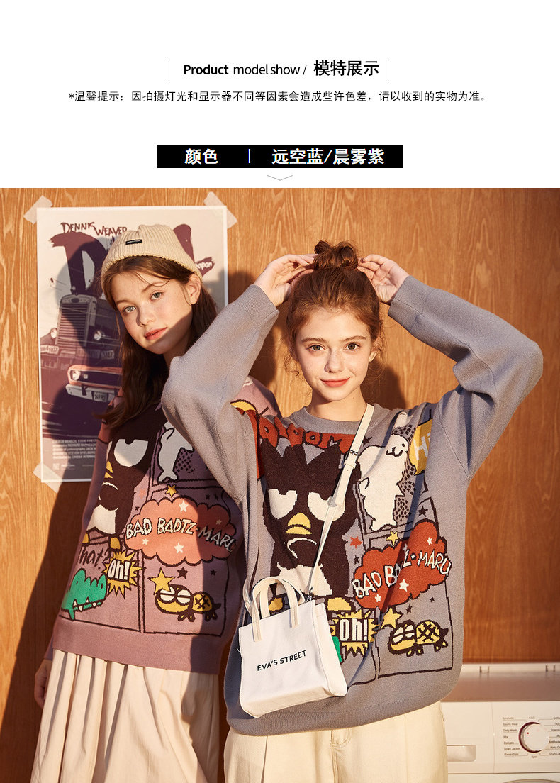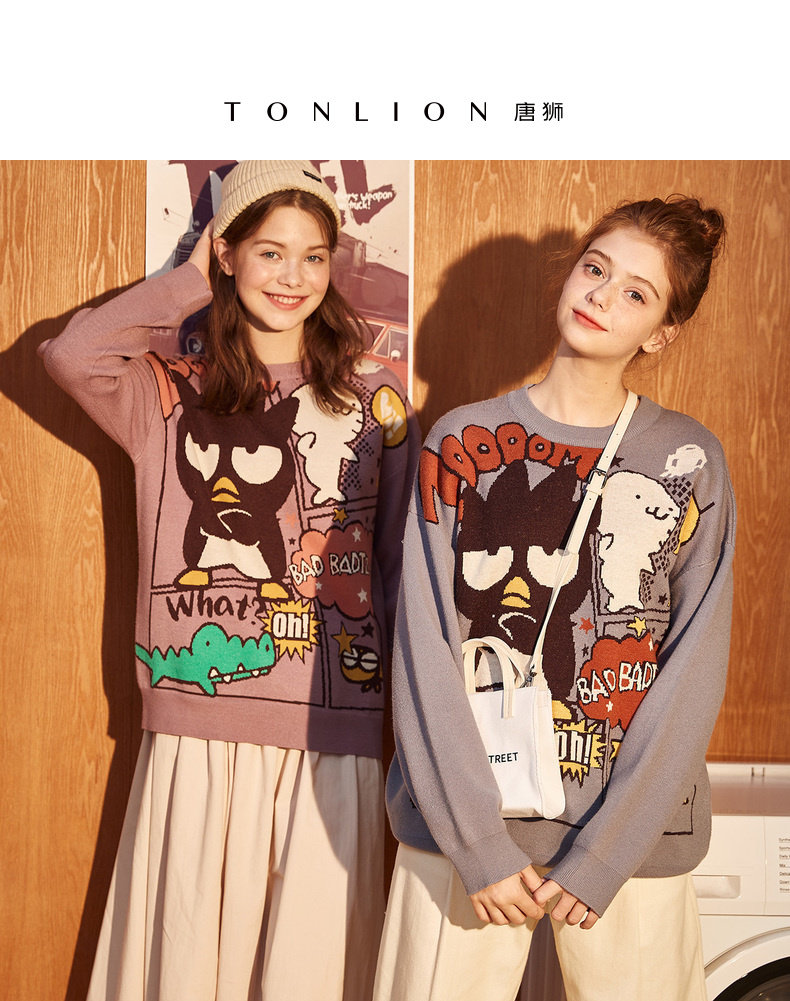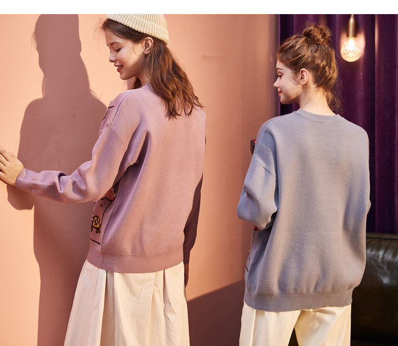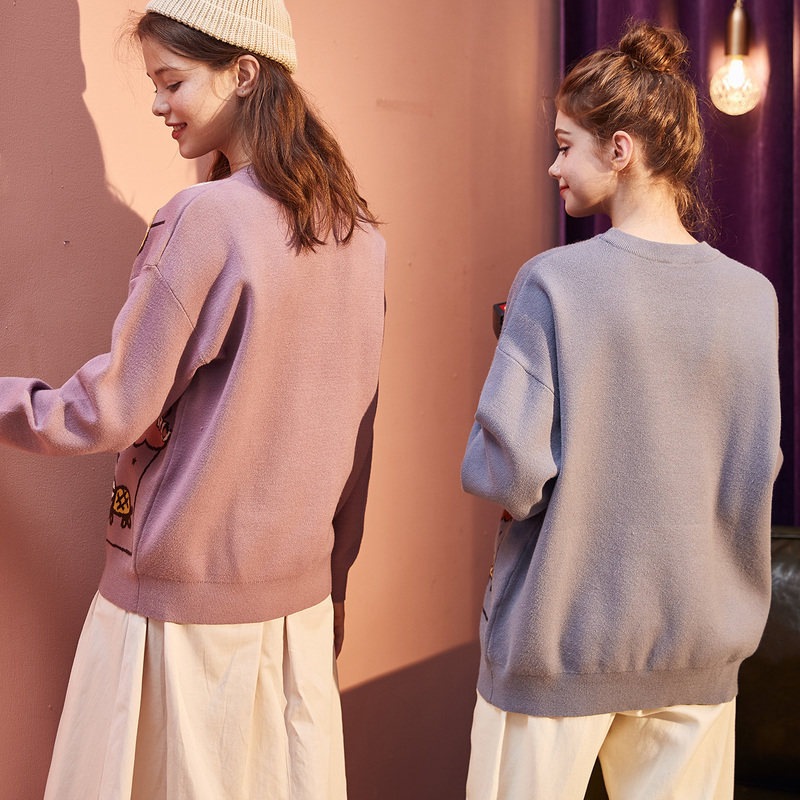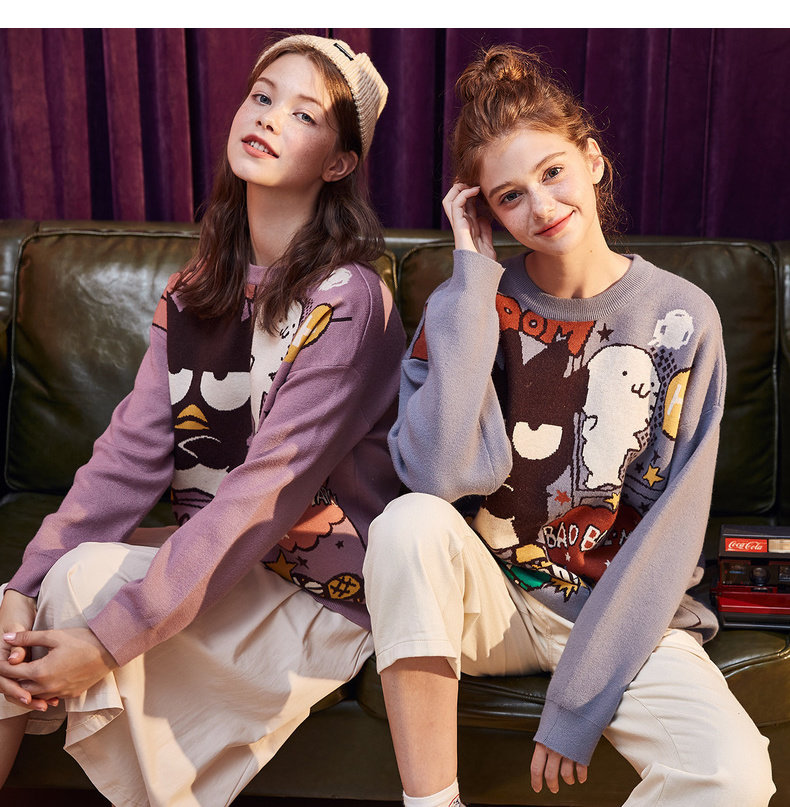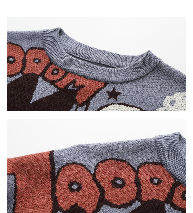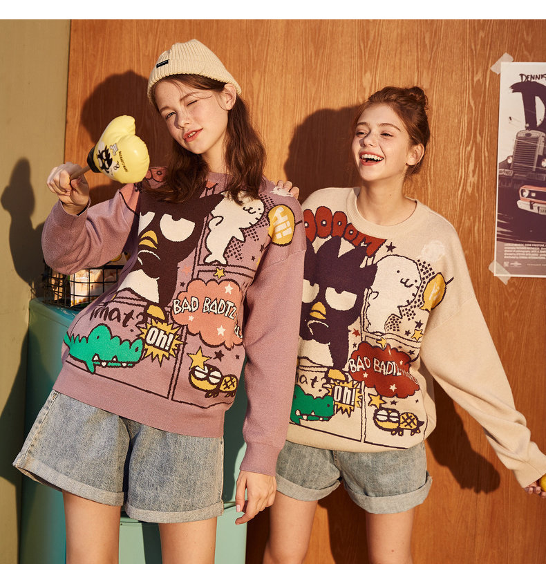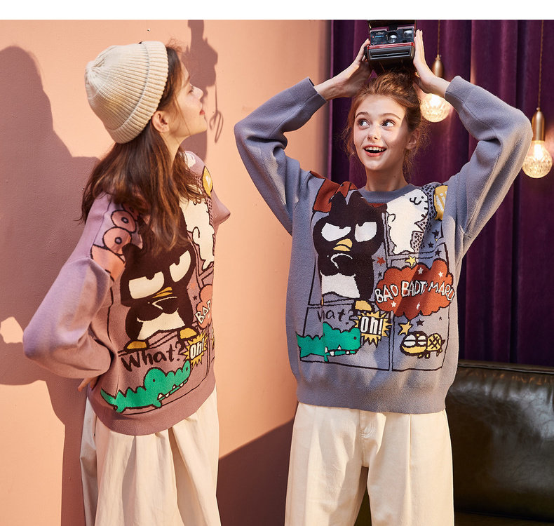 Демисезонный ретро мультяшный трикотажный свитер с круглым воротником, свободный крой