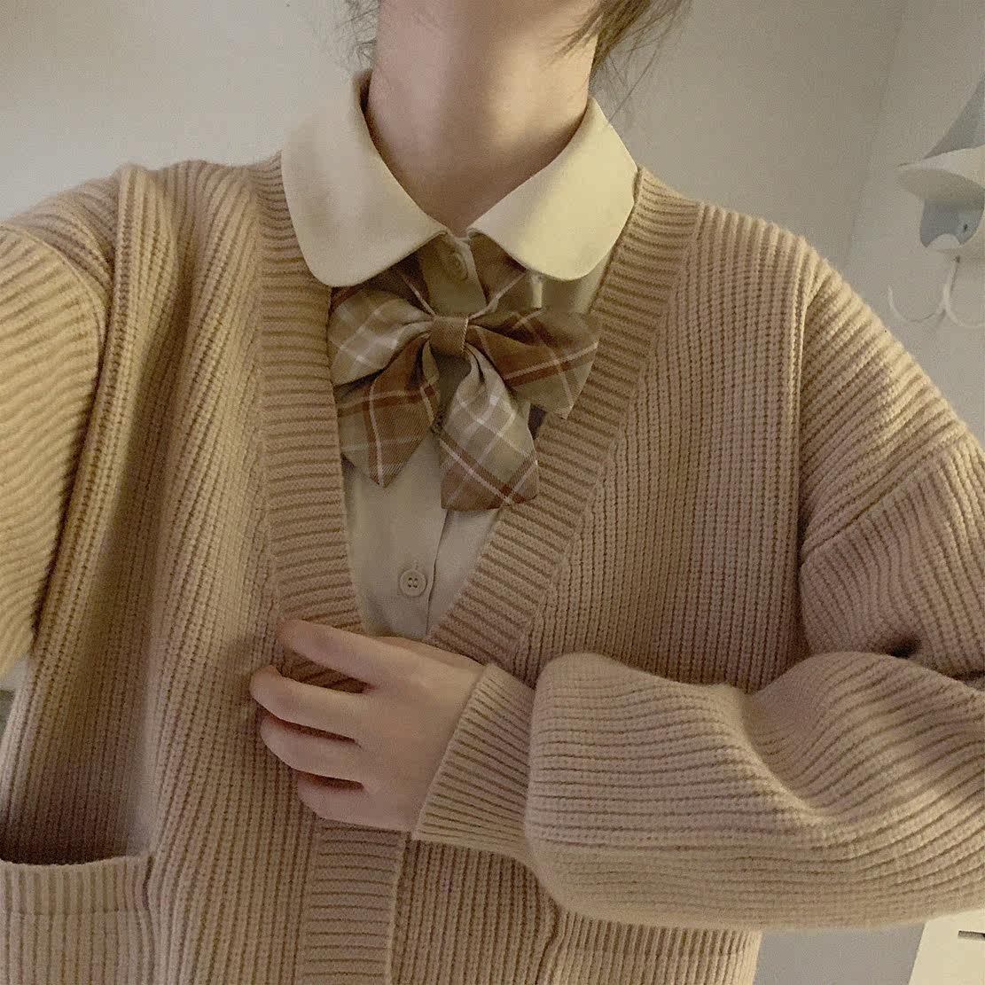 Слиток, розовый бежевый трикотажный свитер, кардиган, свободный крой