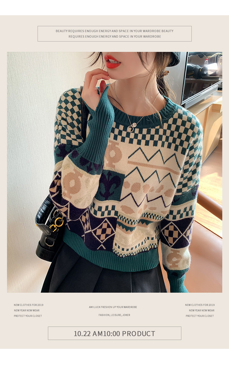 Ретро демисезонный трикотажный свитер с круглым воротником, свободный крой