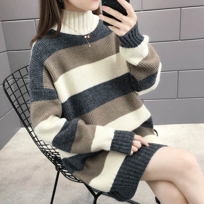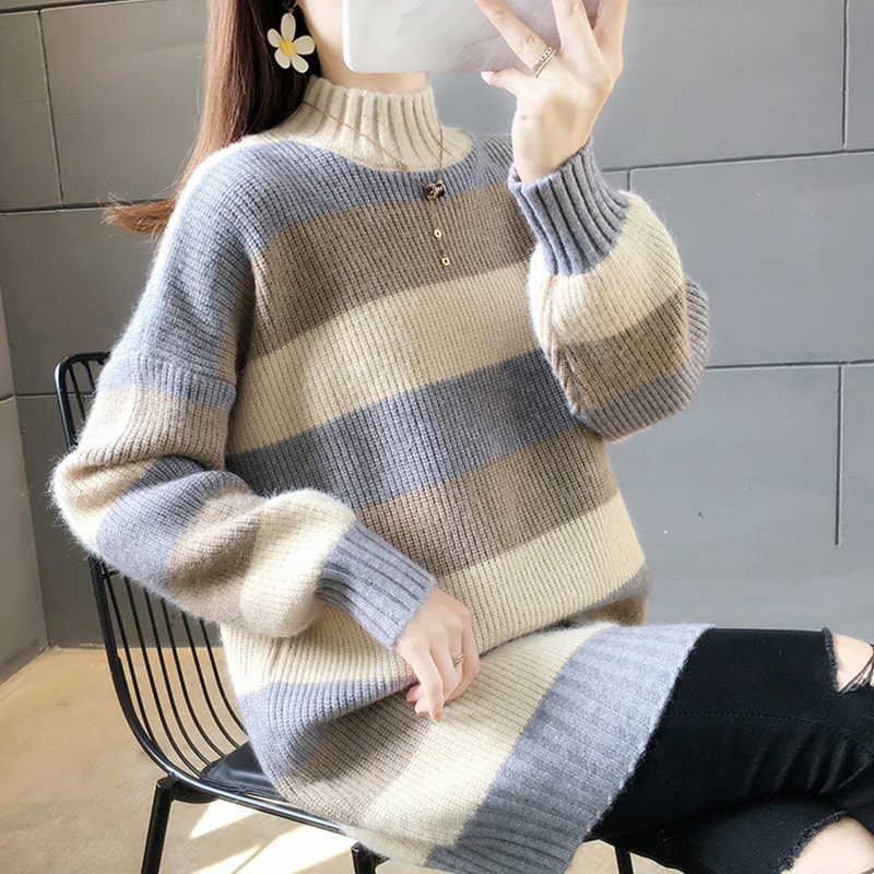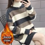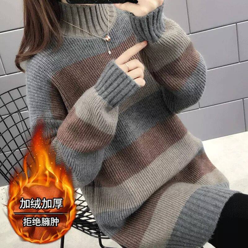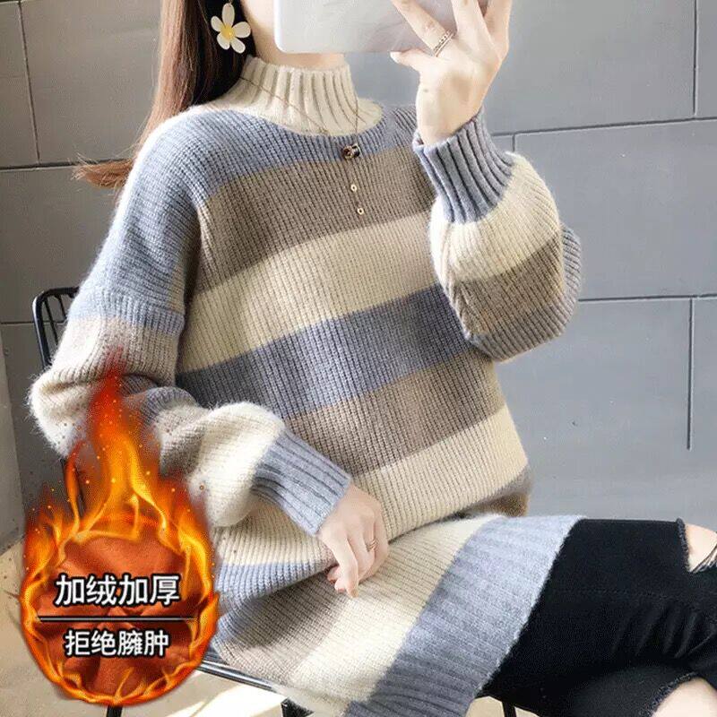 Свитер, демисезонные длинные трикотажные базовые приятные телу джинсы с начесом, коллекция 2021, средней длины