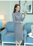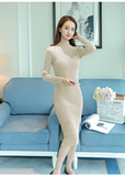 Приталенный удерживающий тепло базовый приятный телу свитер, демисезонное длинное платье, увеличенная толщина, с акцентом на бедрах