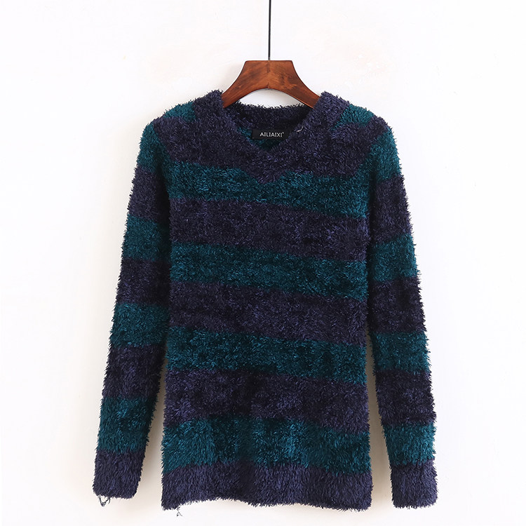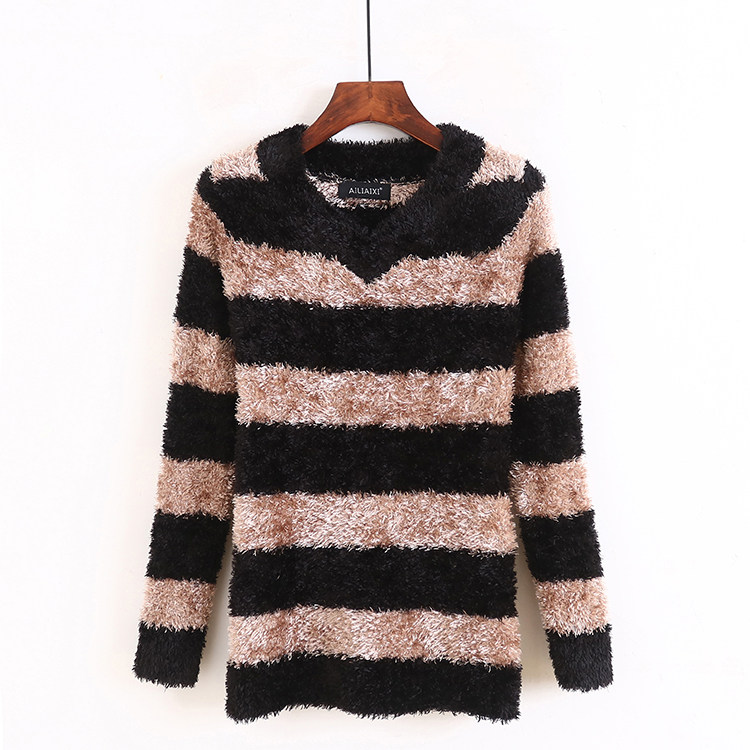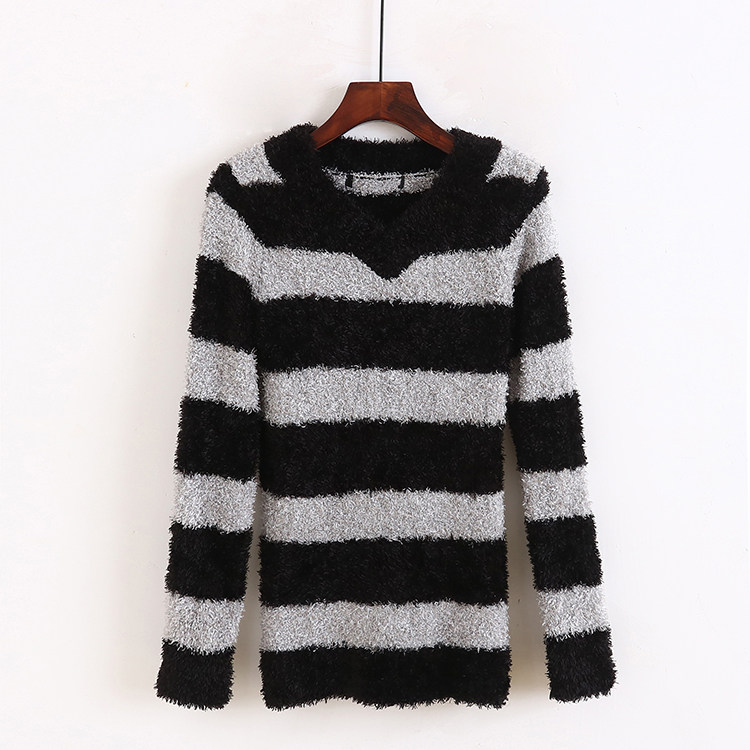 V-образное вязаная полосатая рубашка Осень Новая стиль базовая рубашка. Пуловая рубашка повседневная корейская женская базовая рубашка P/16-4