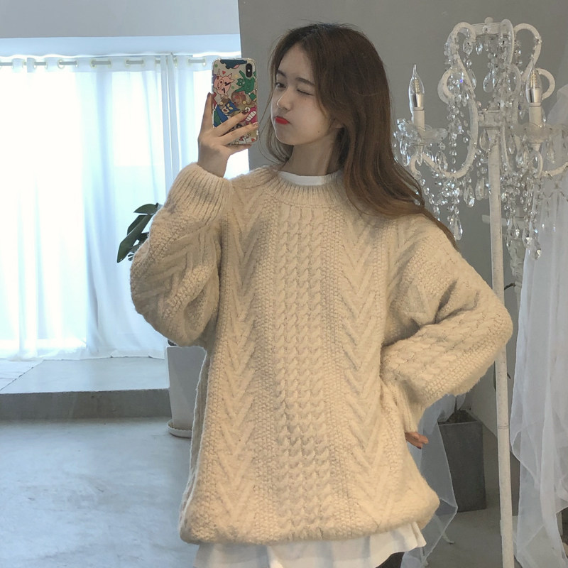 Ретро демисезонный японский свитер для школьников и студентов, свободный крой, увеличенная толщина