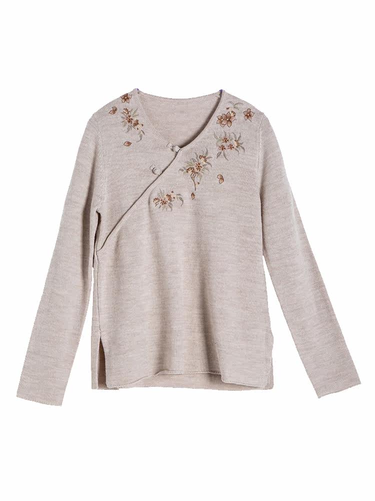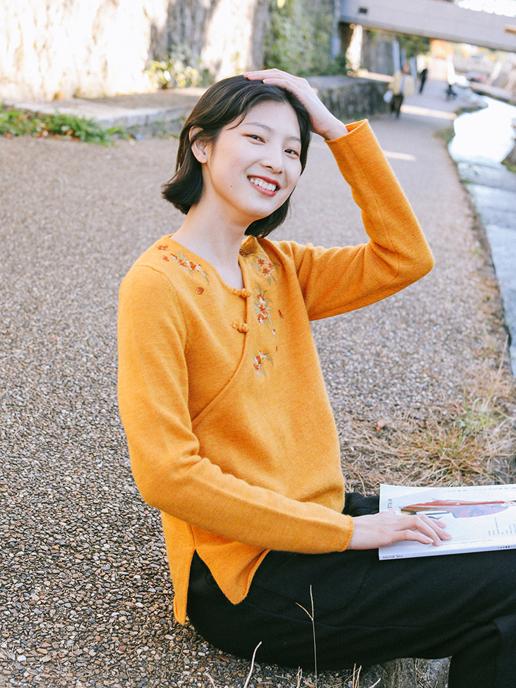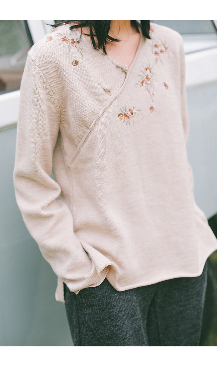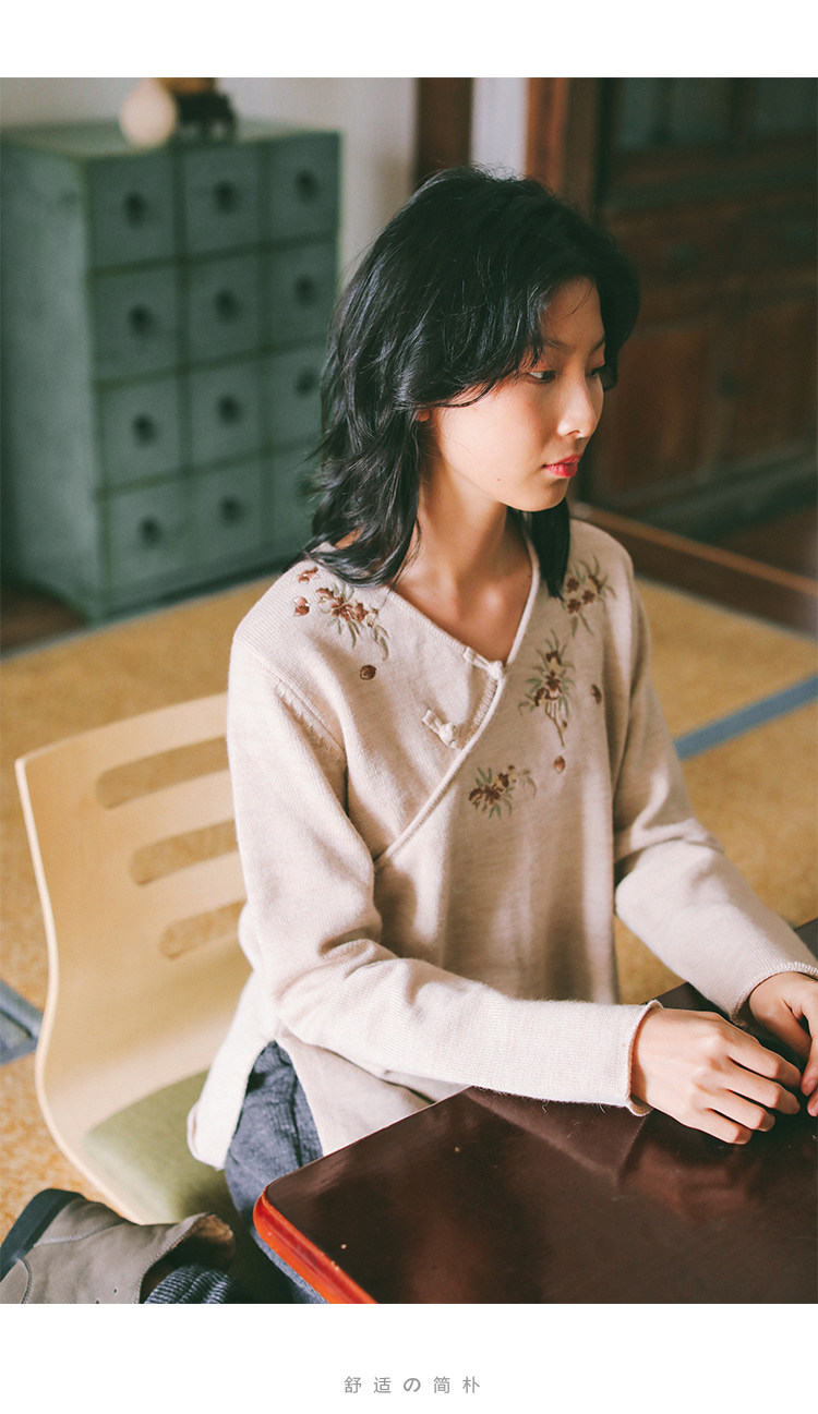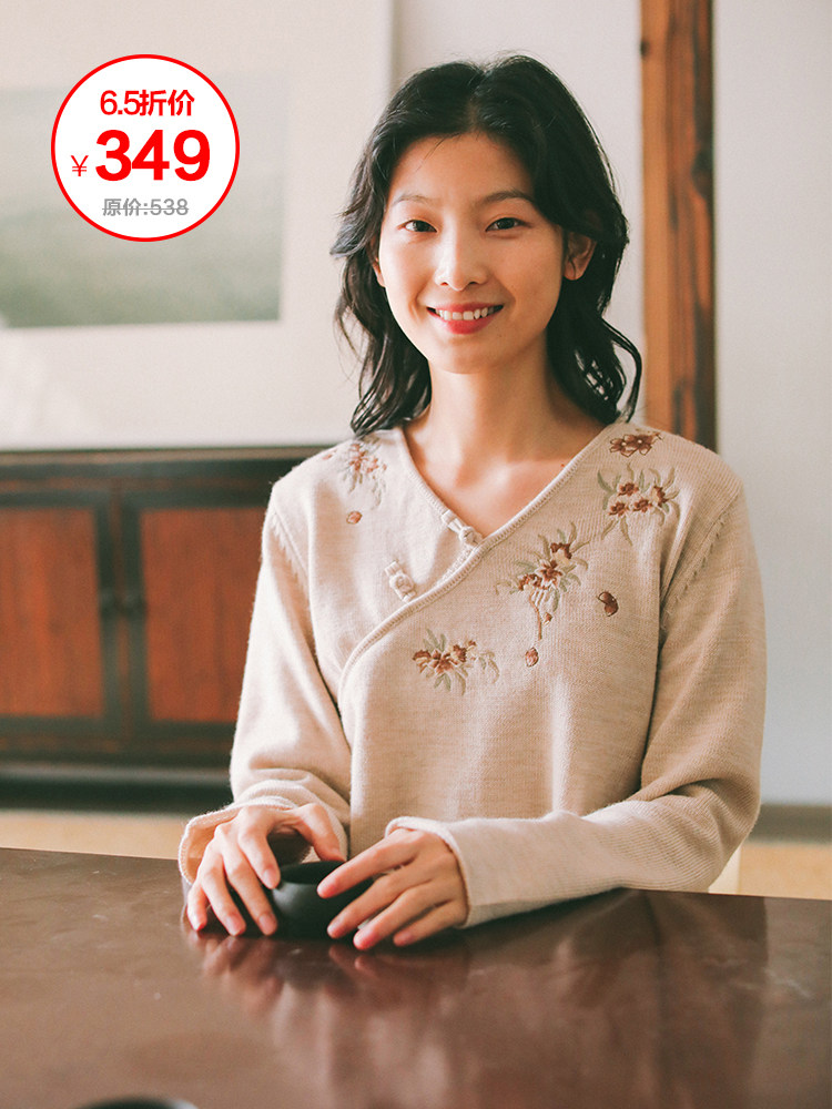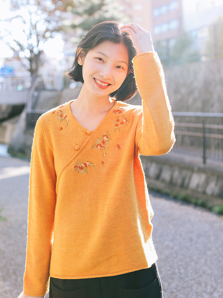 Шерстяной осенний свитер, с вышивкой, китайский стиль, 2021 года