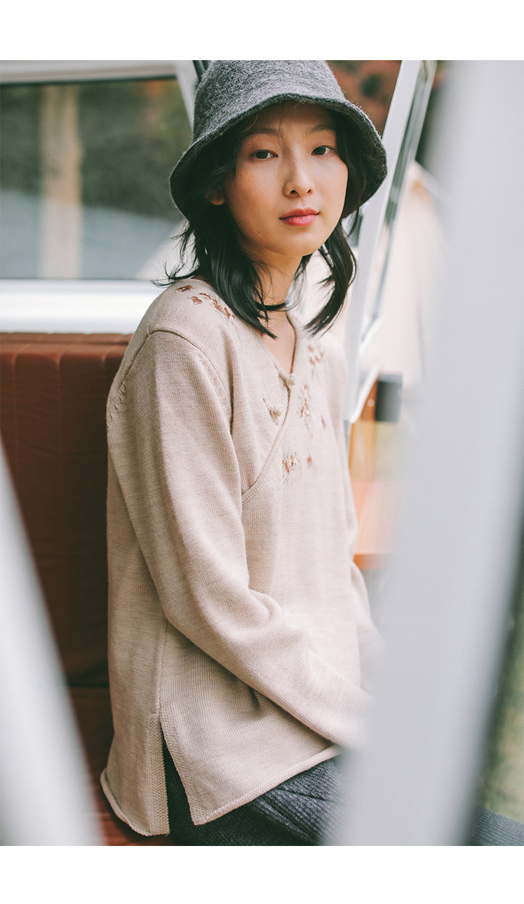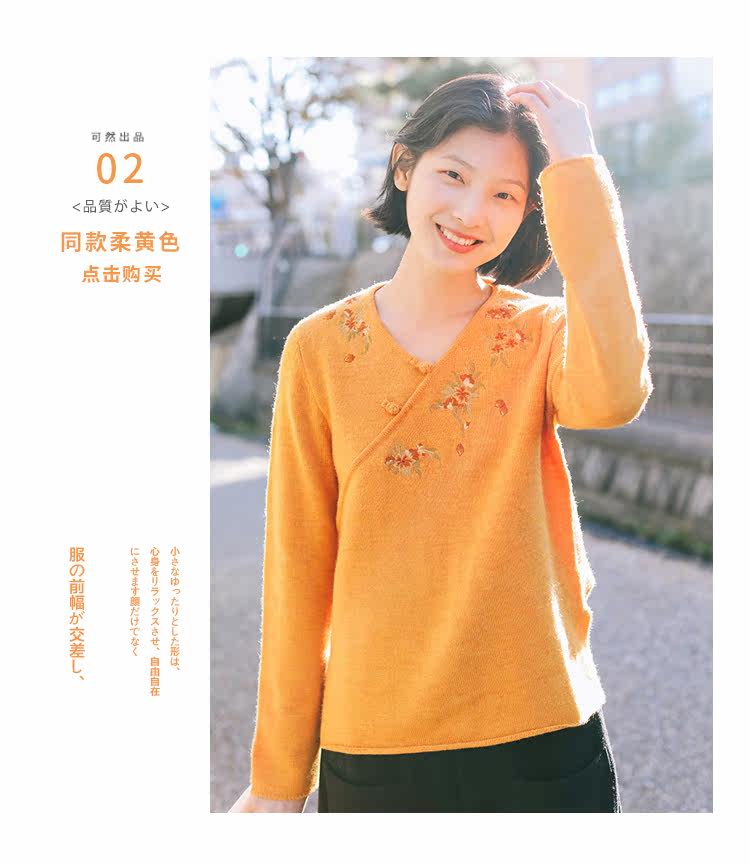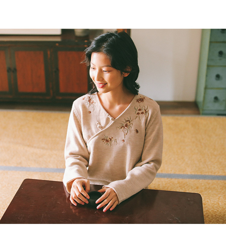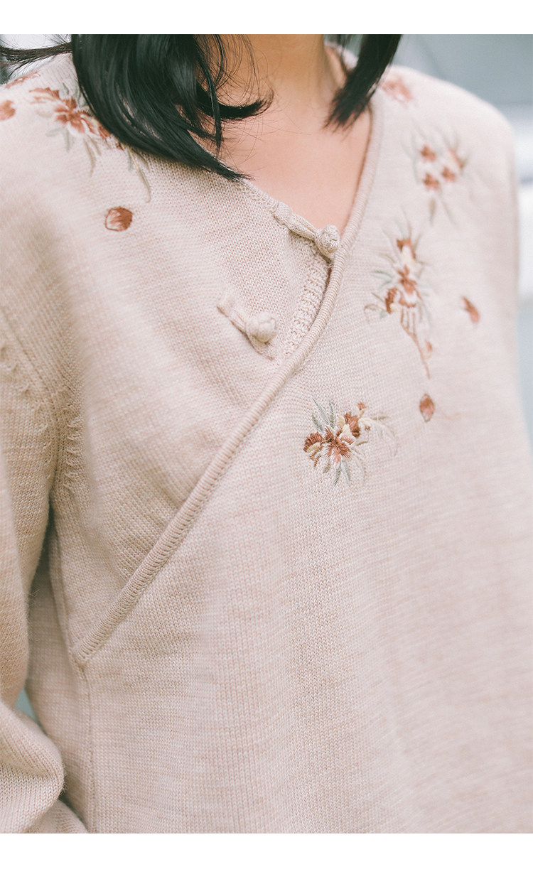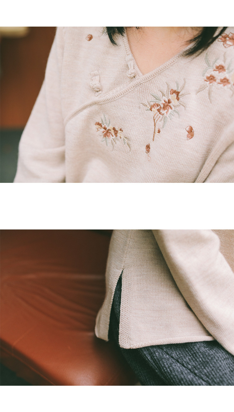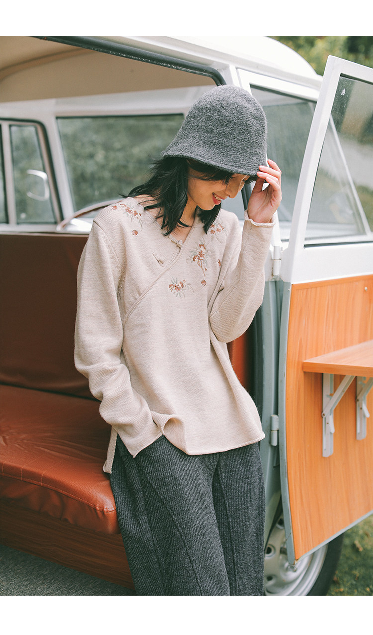 Шерстяной осенний свитер, с вышивкой, китайский стиль, 2021 года