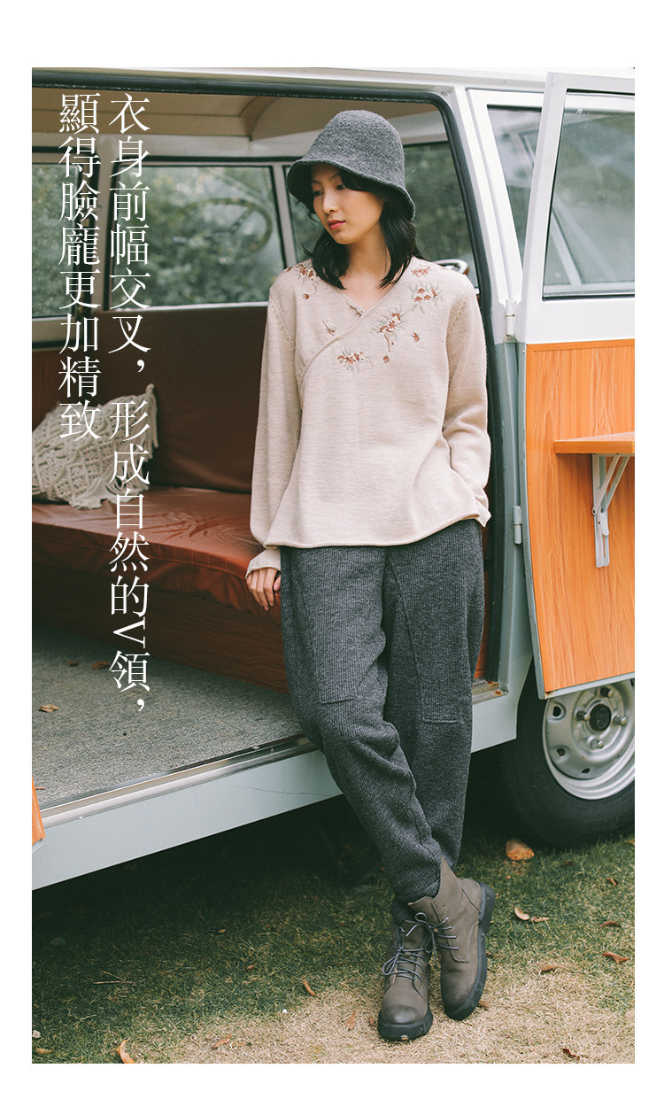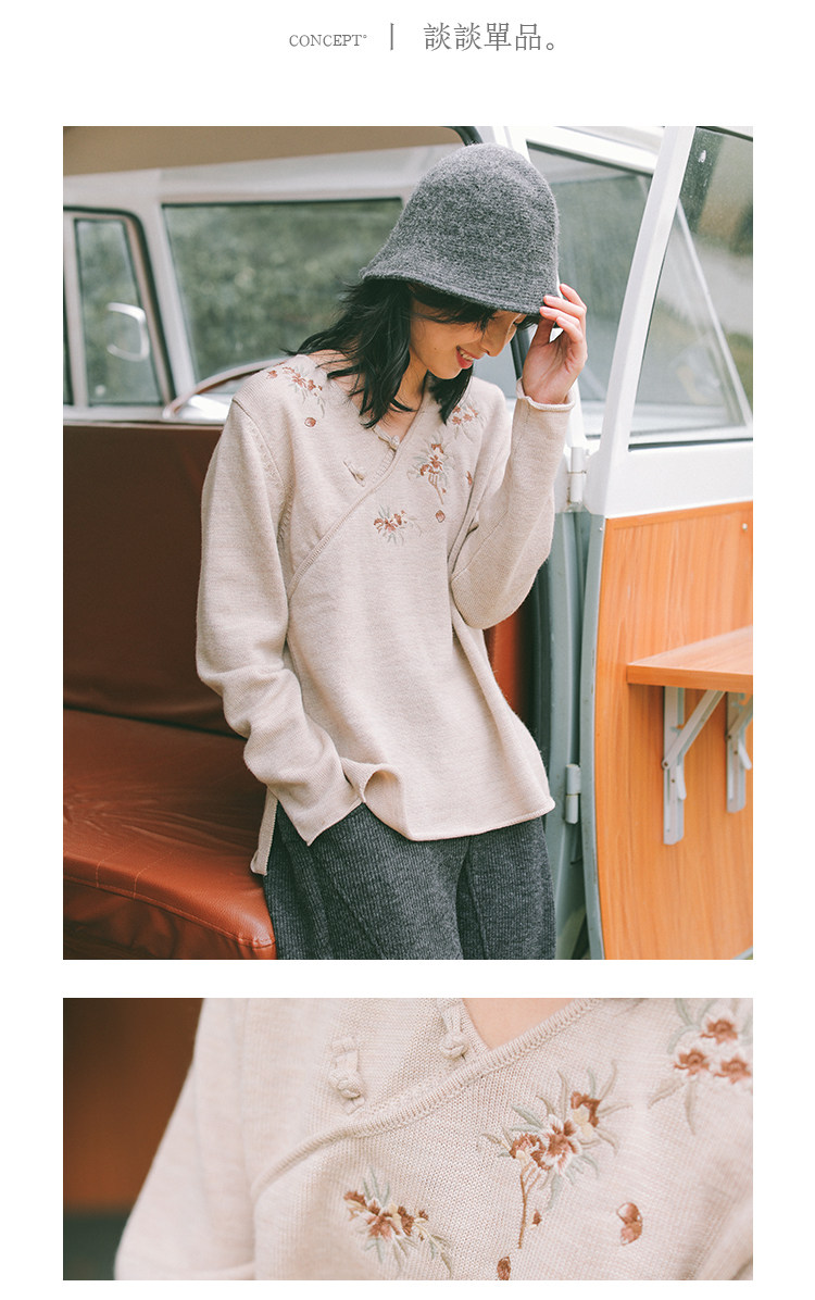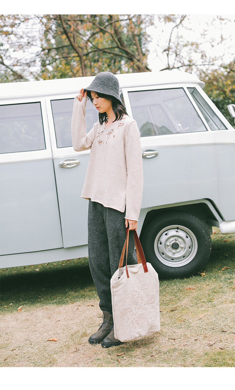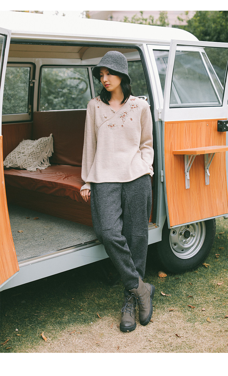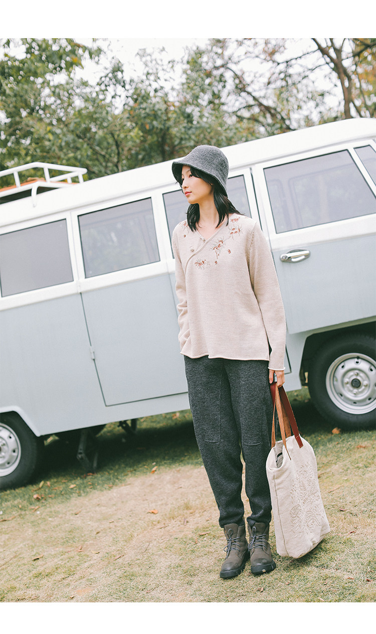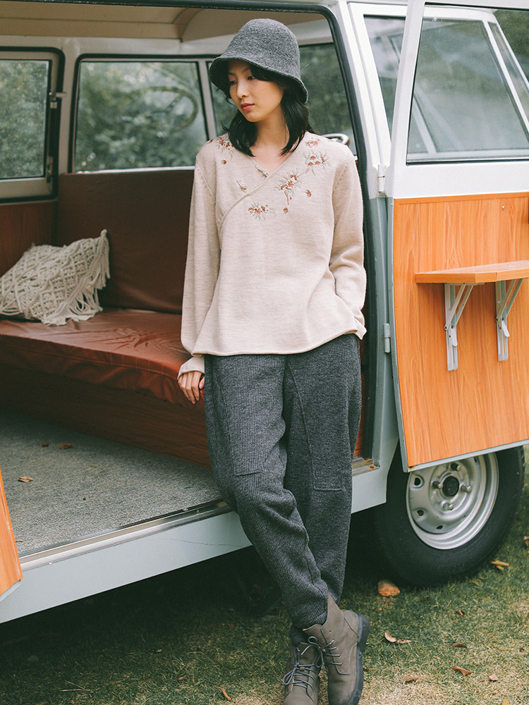 Шерстяной осенний свитер, с вышивкой, китайский стиль, 2021 года