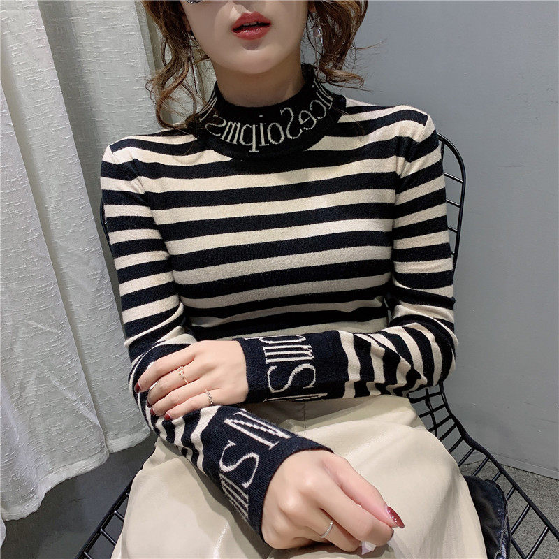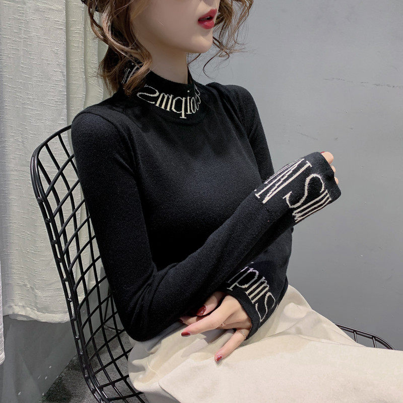 Базовый приятный телу приталенный трикотажный лонгслив, черный утепленный свитер, 2020, в западном стиле