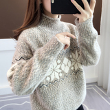 Зимний бархатный трикотажный свитер, коллекция 2022, увеличенная толщина, в корейском стиле, оверсайз, в западном стиле