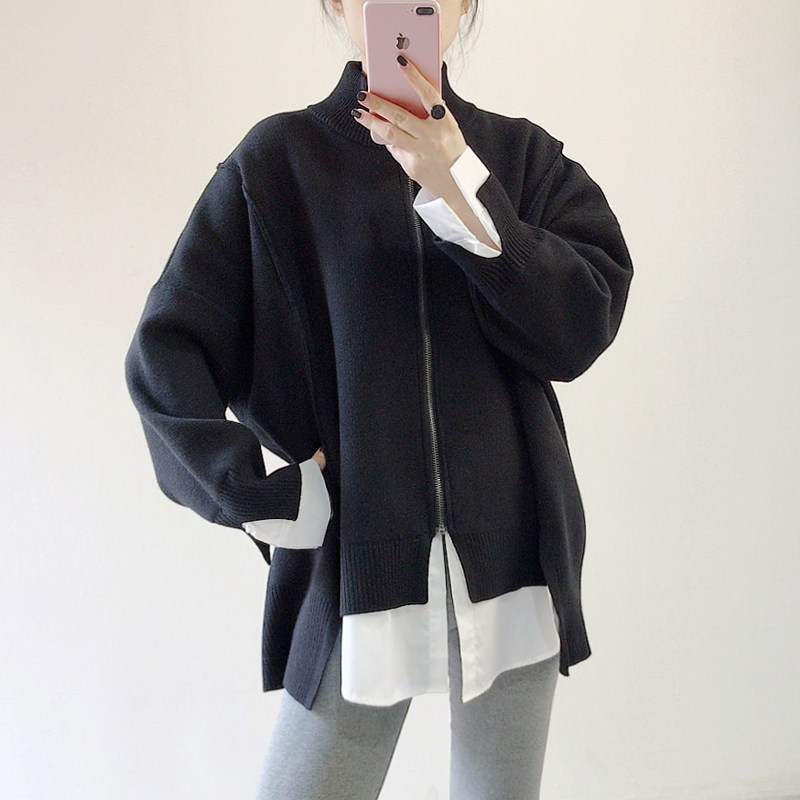 Комплект, длинный демисезонный свитер, трикотажный кардиган, 2019, в корейском стиле, средней длины