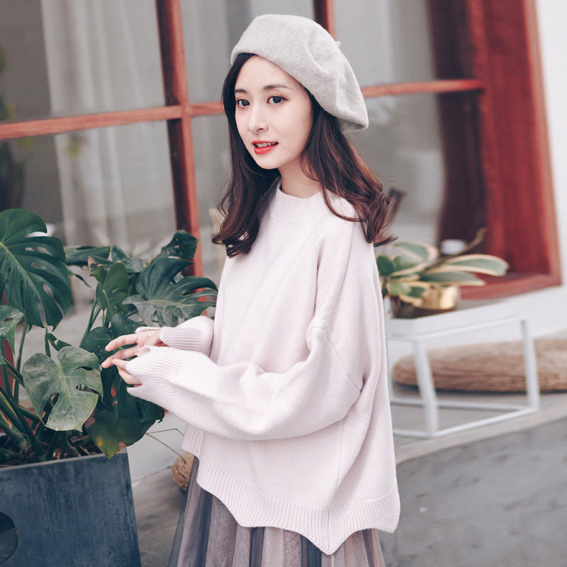 Японский розовый трикотажный осенний свитер, оверсайз