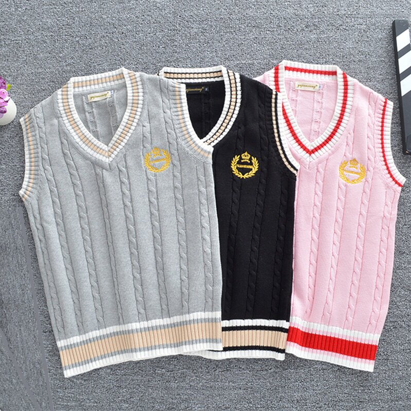 Хлопковый осенний жилет для школьников, трикотажный свитер, студенческая юбка в складку, для средней школы, большой размер