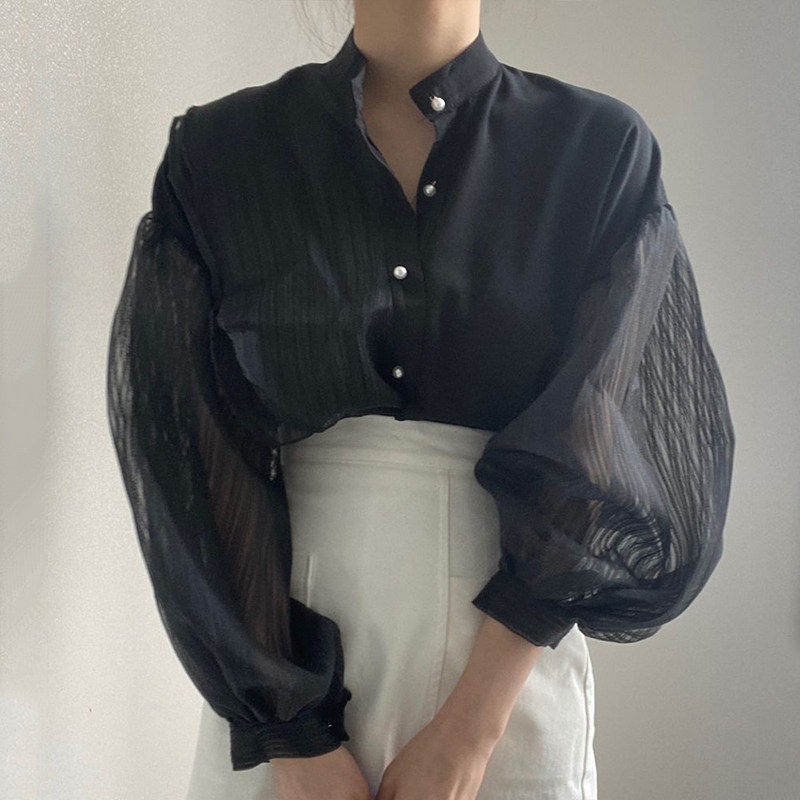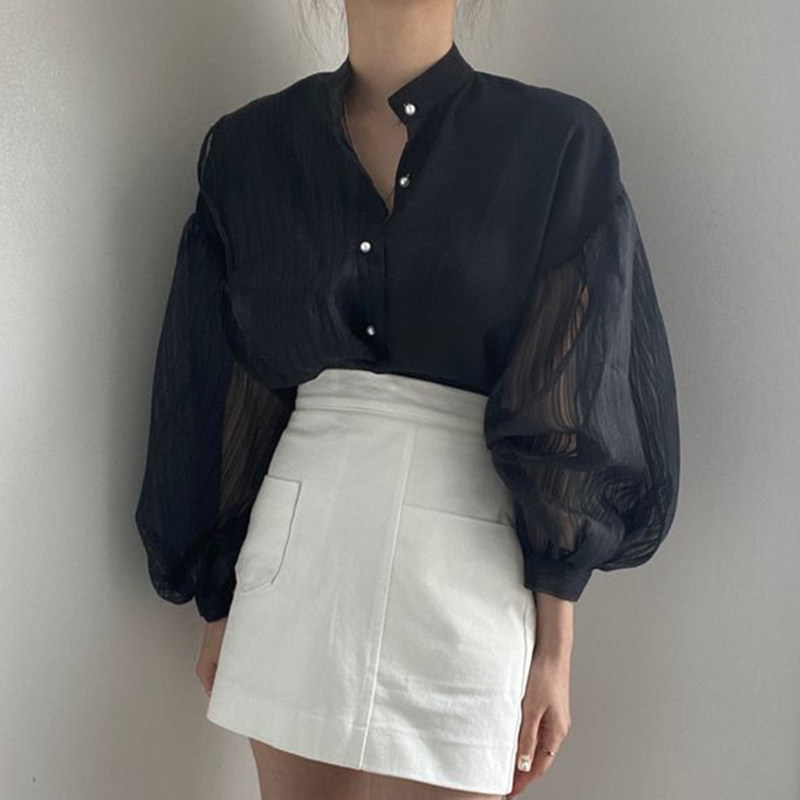 Фонарь, рубашка, в корейском стиле, свободный крой