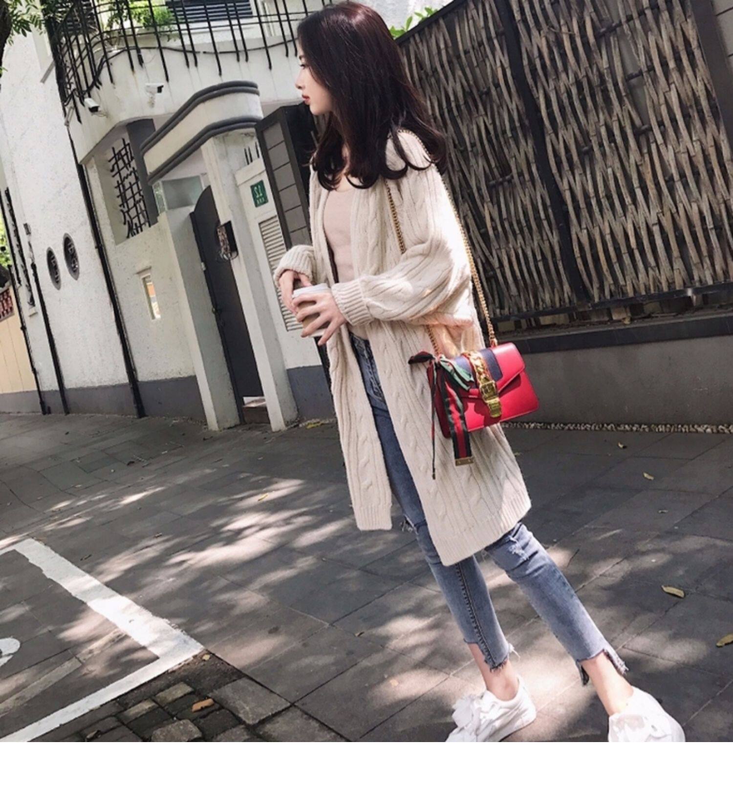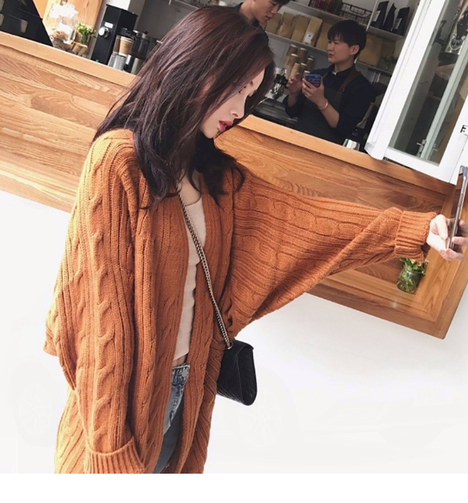 Свитер, куртка, кардиган, длинная трикотажная утепленный лонгслив, 2025 года, в корейском стиле, средней длины