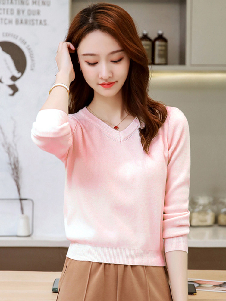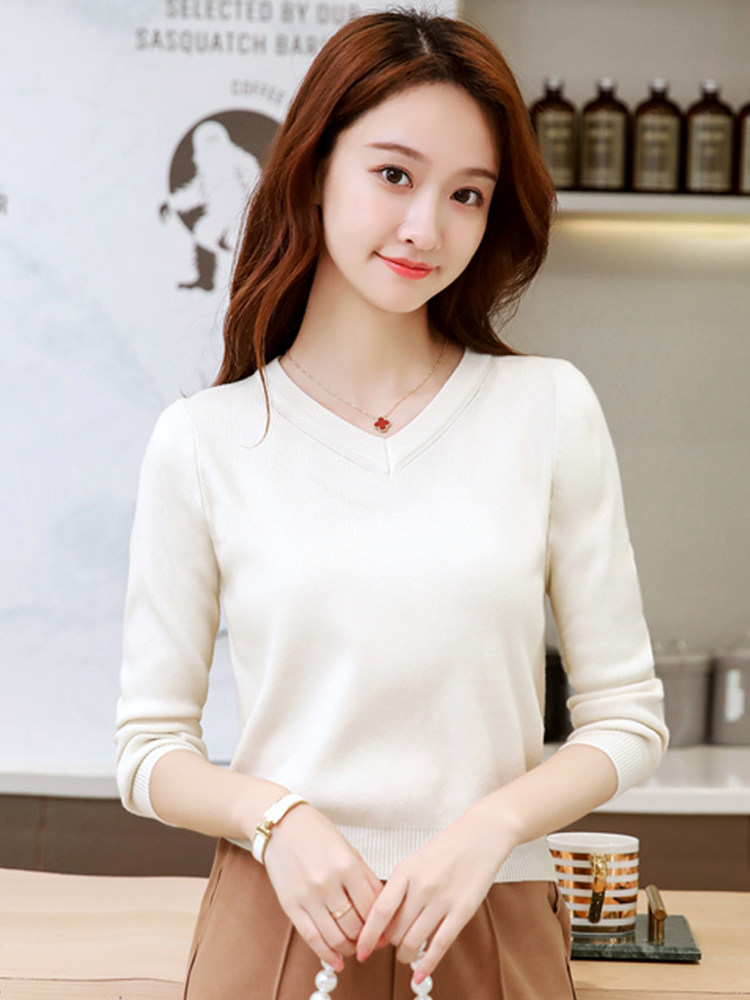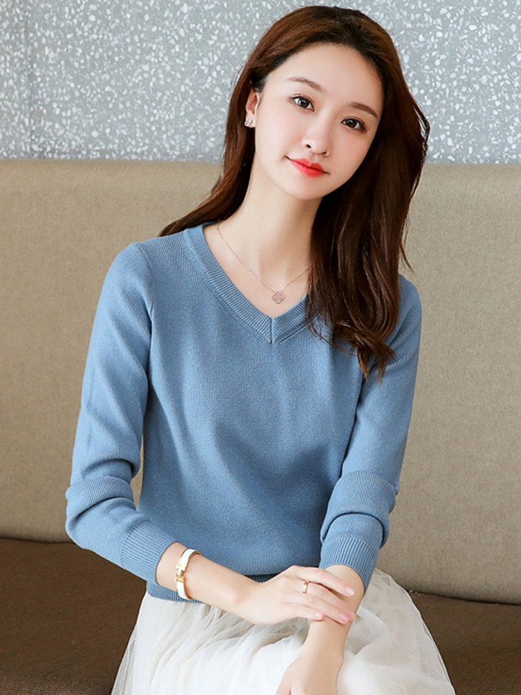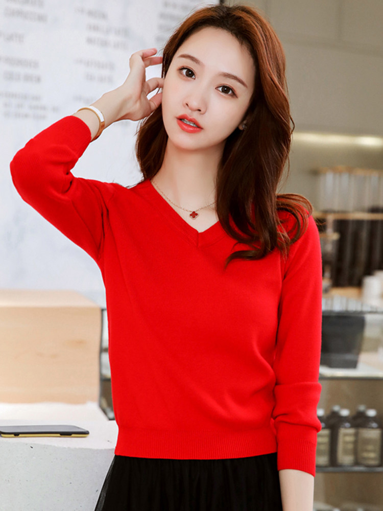 Трикотажный осенний короткий приталенный базовый приятный телу свитер, V-образный вырез, 2022, подходит для подростков, облегающий крой, высокая талия