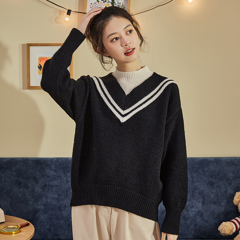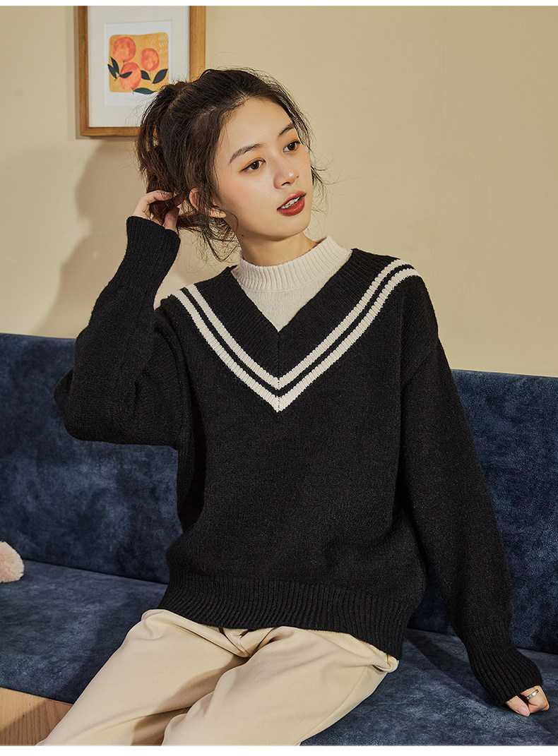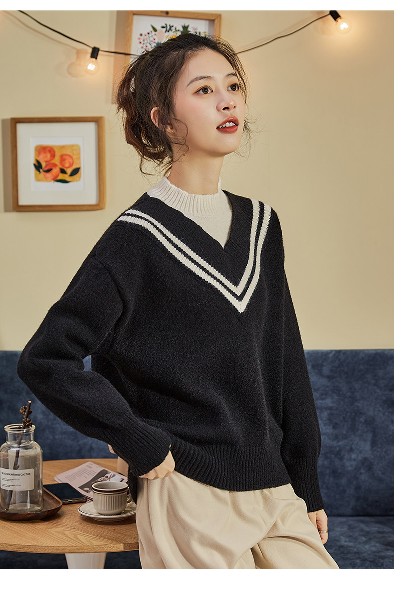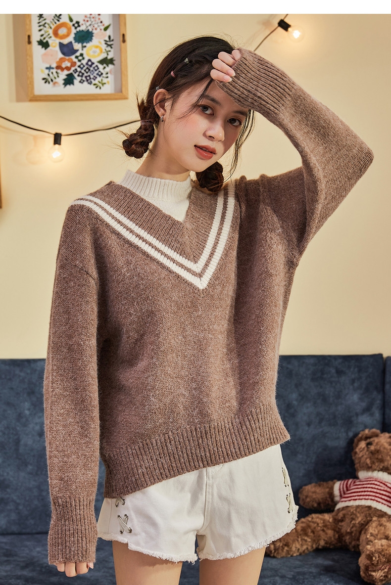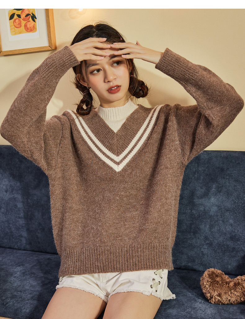 Демисезонный свитер, лонгслив, трикотажный комплект, оверсайз, V-образный вырез
