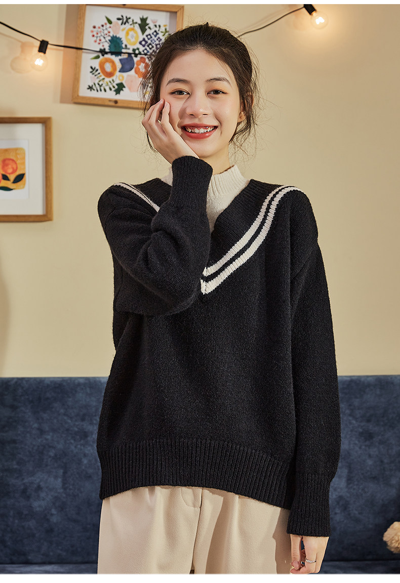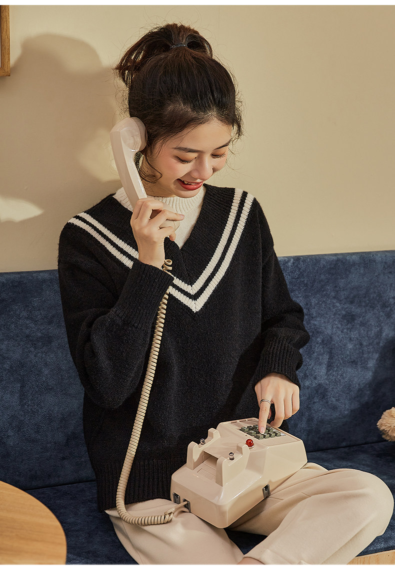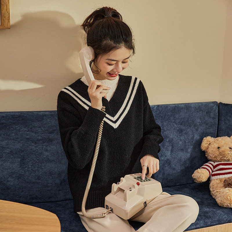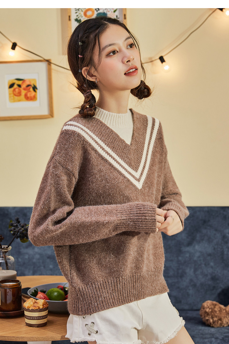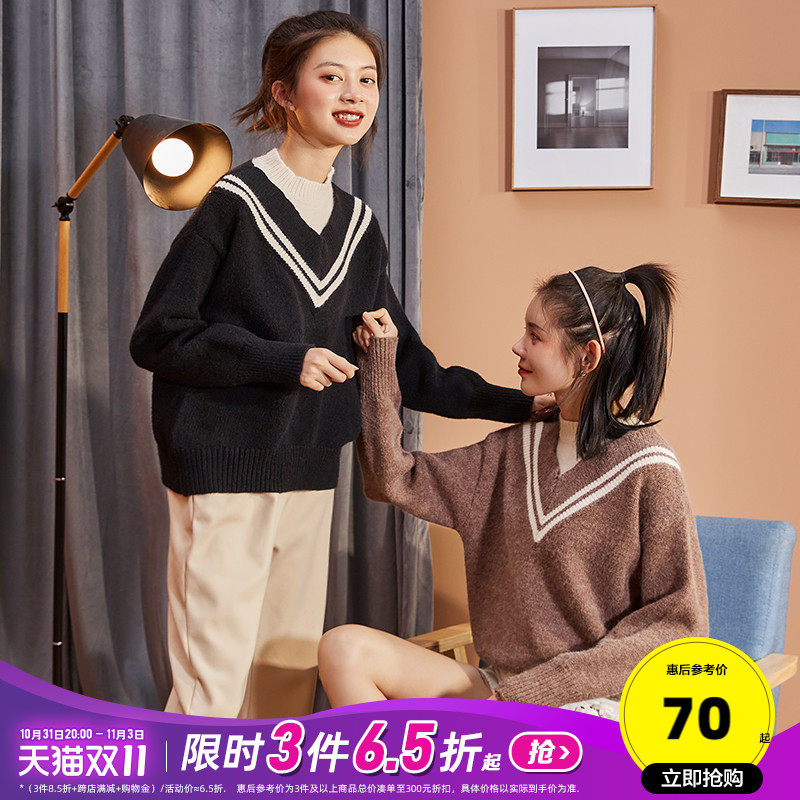 Демисезонный свитер, лонгслив, трикотажный комплект, оверсайз, V-образный вырез