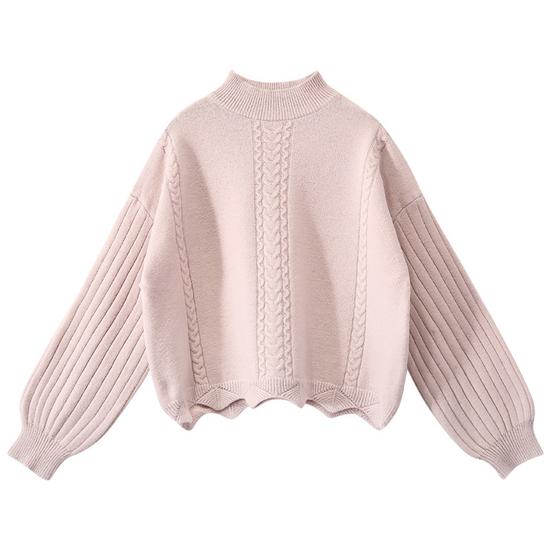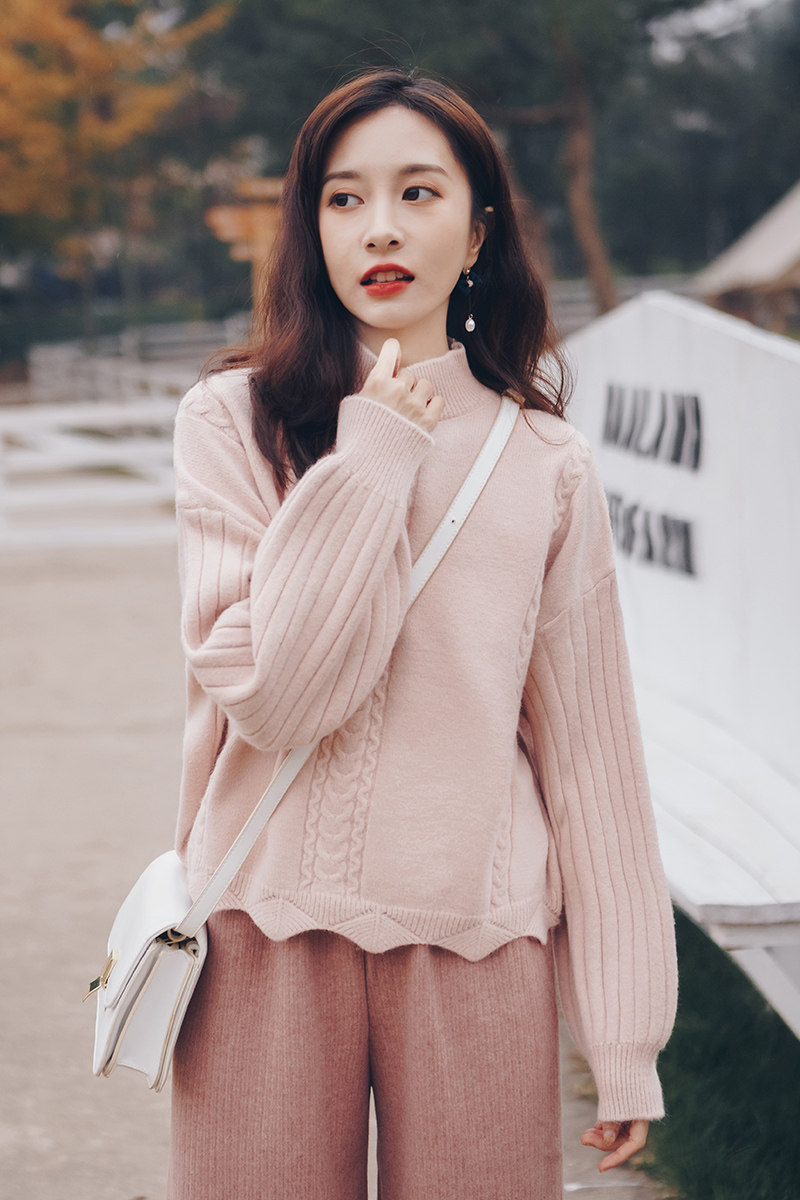 Розовый цветной дизайнерский осенний трикотажный свитер, высокий воротник, тренд сезона, подходит для подростков