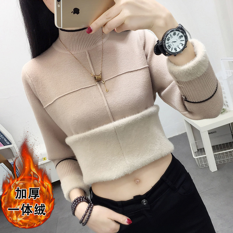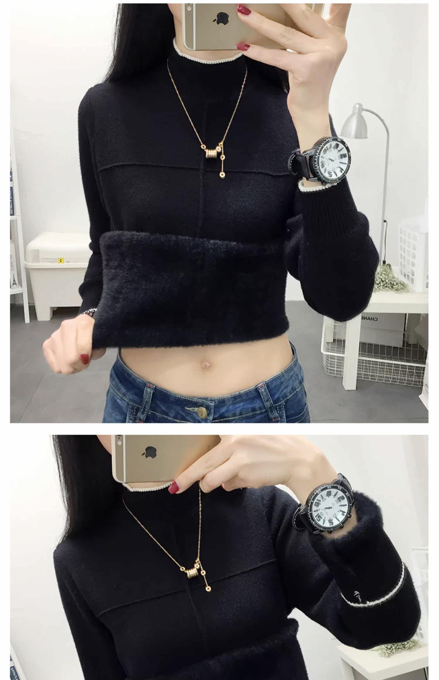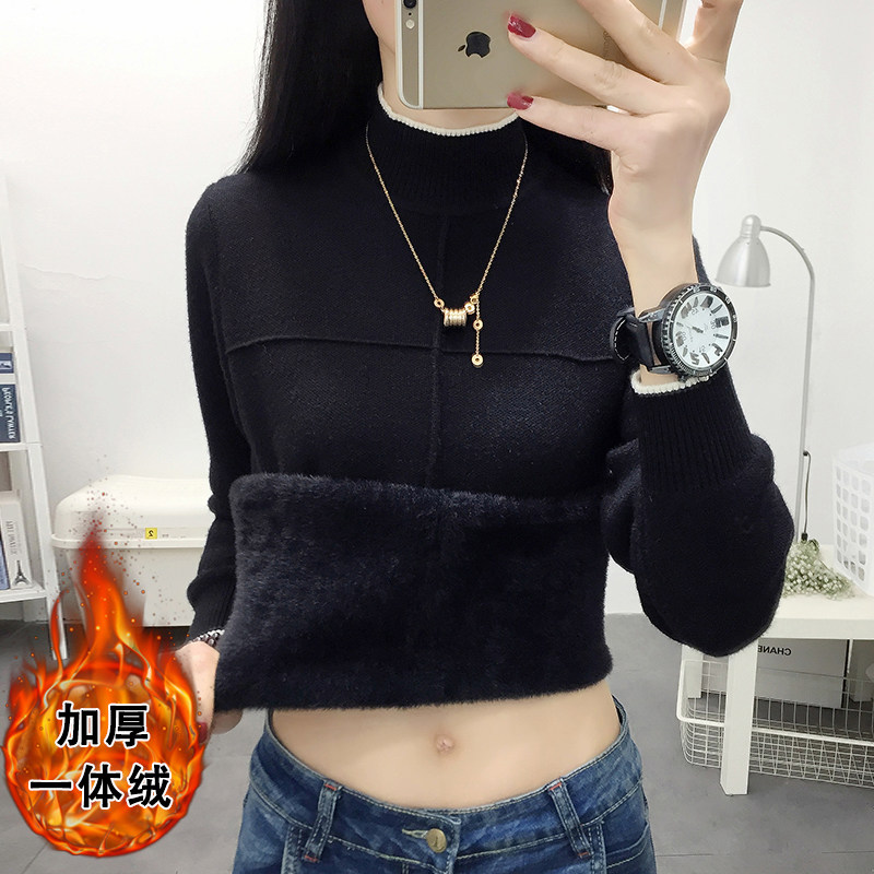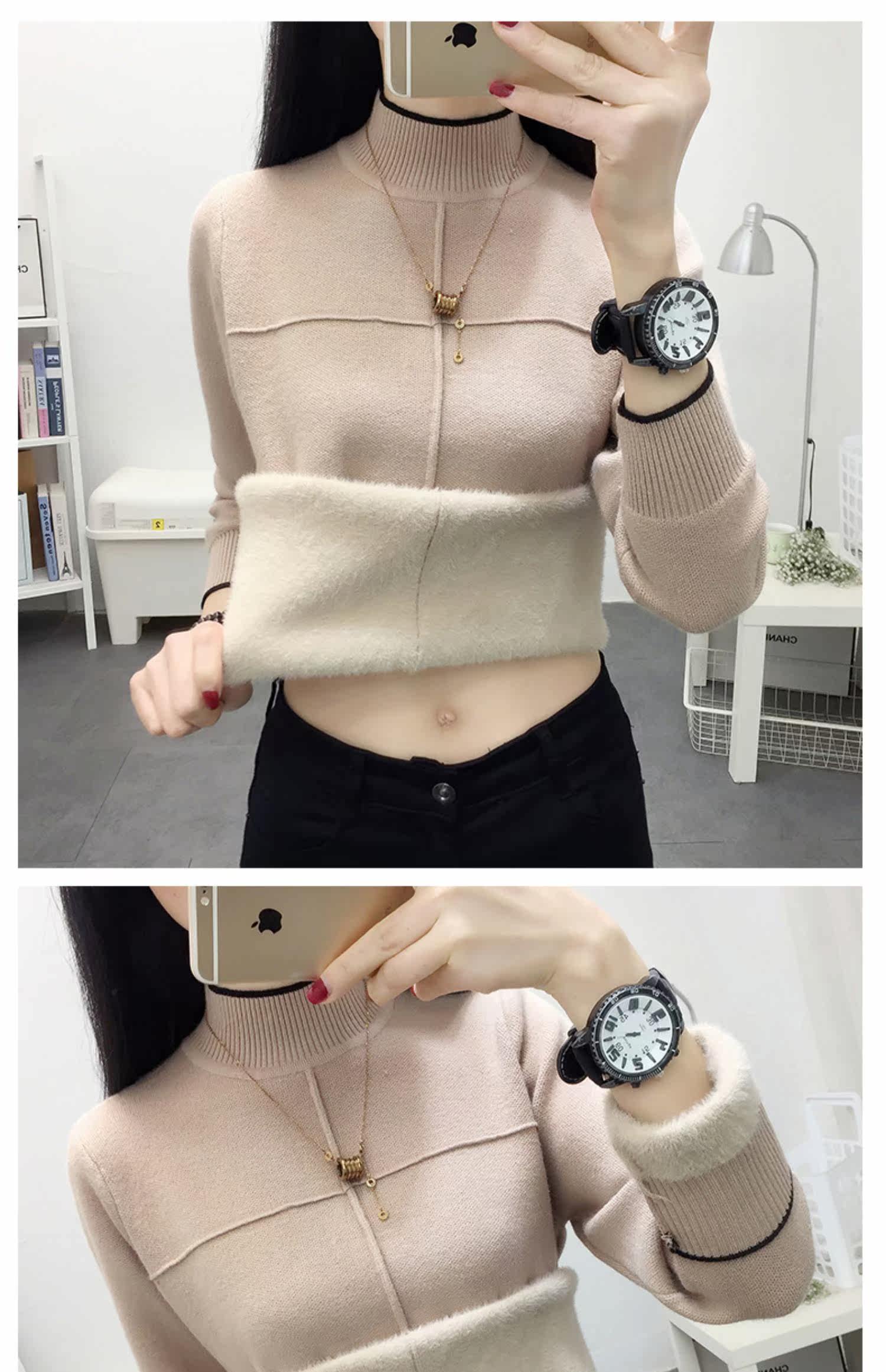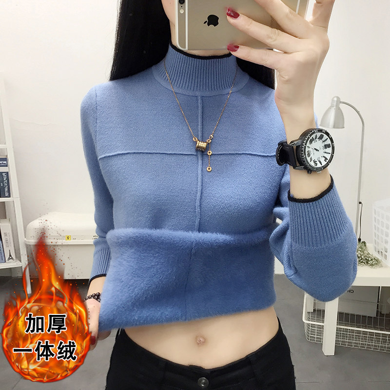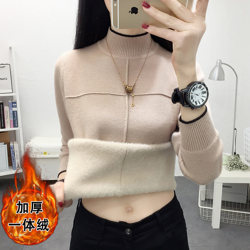 Утепленный бархатный свитер, удерживающий тепло базовый приятный телу трикотажный лонгслив, высокий воротник, увеличенная толщина, свободный крой