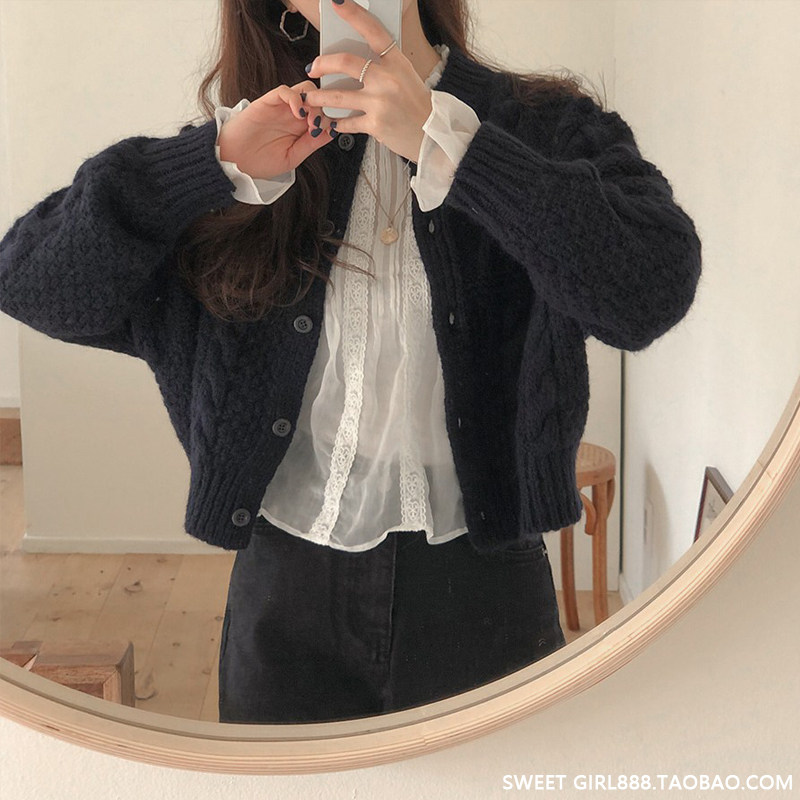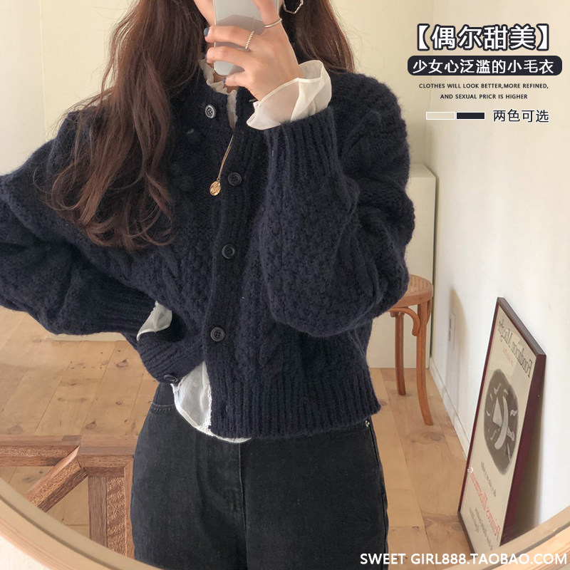Ретро кардиган с круглым воротником, короткий демисезонный свитер, в корейском стиле, оверсайз, подходит для подростков