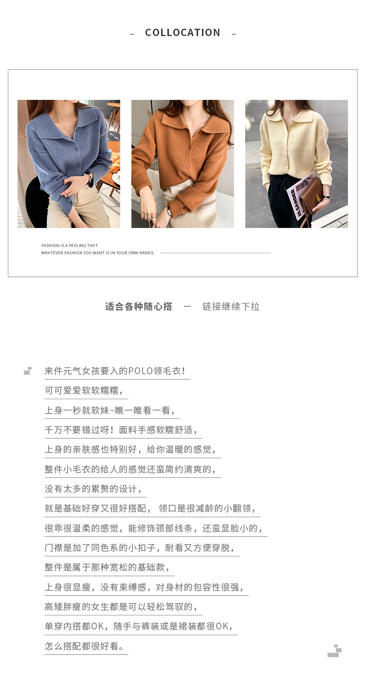 Осенний свитер, трикотажный кардиган, оверсайз, воротник поло
