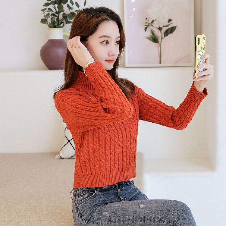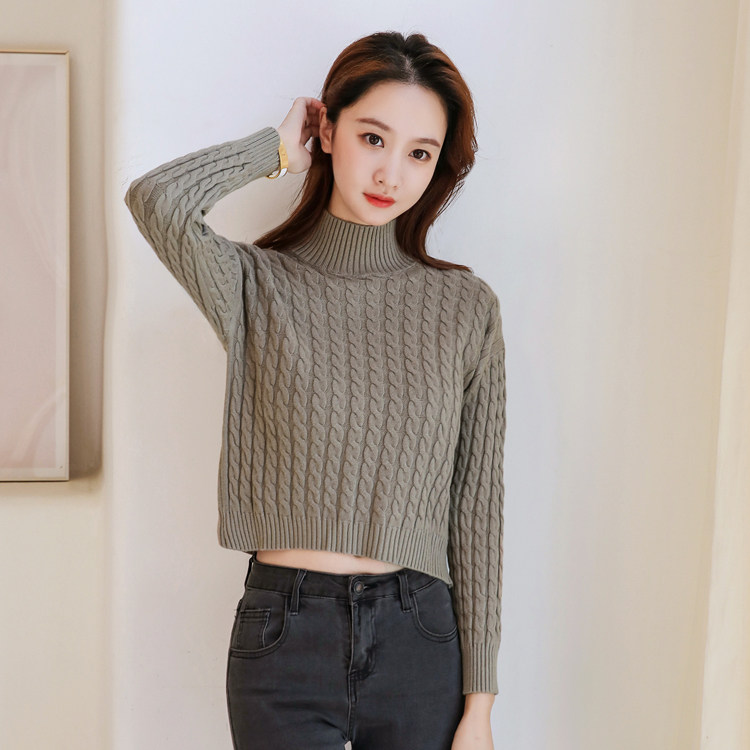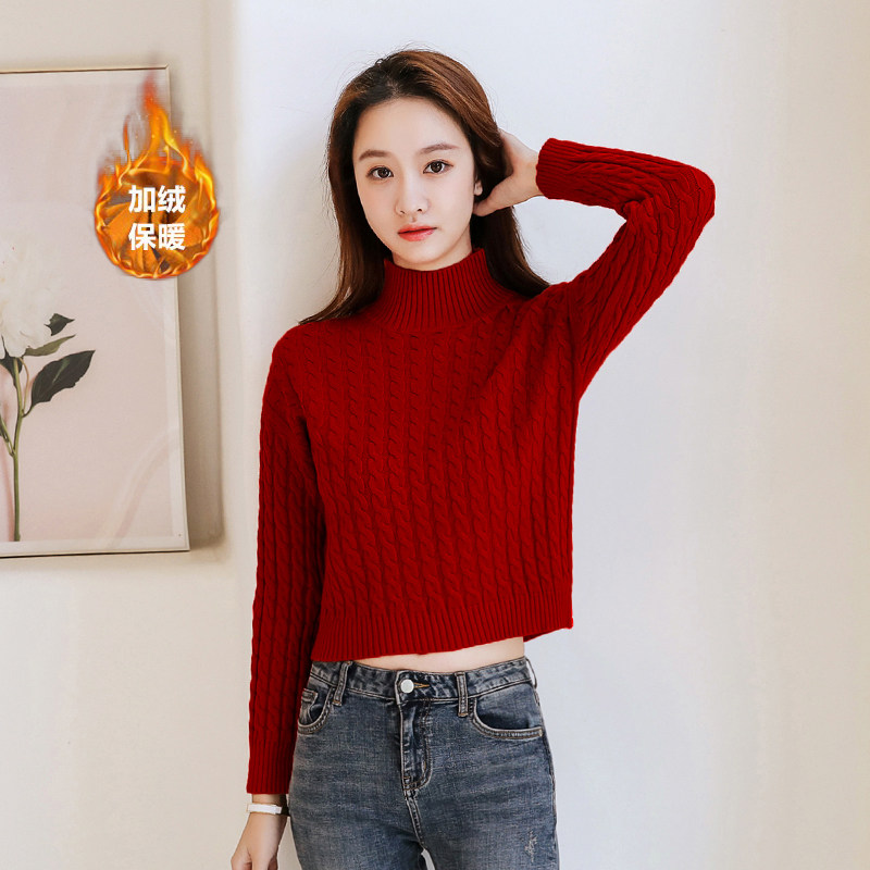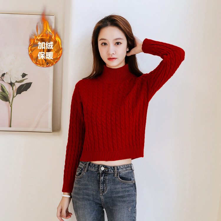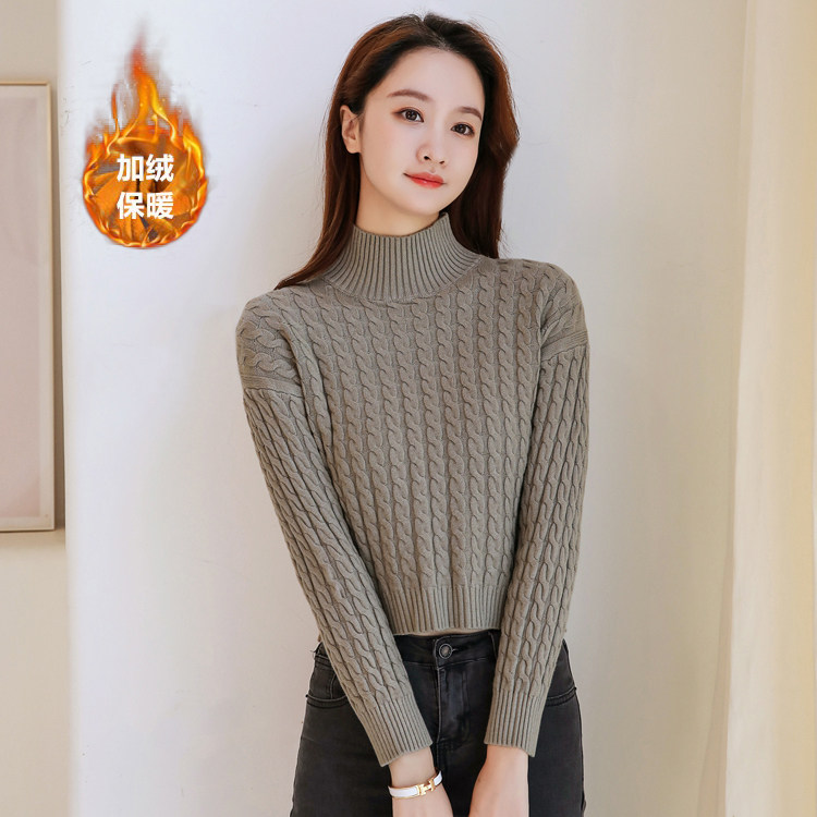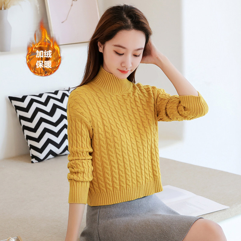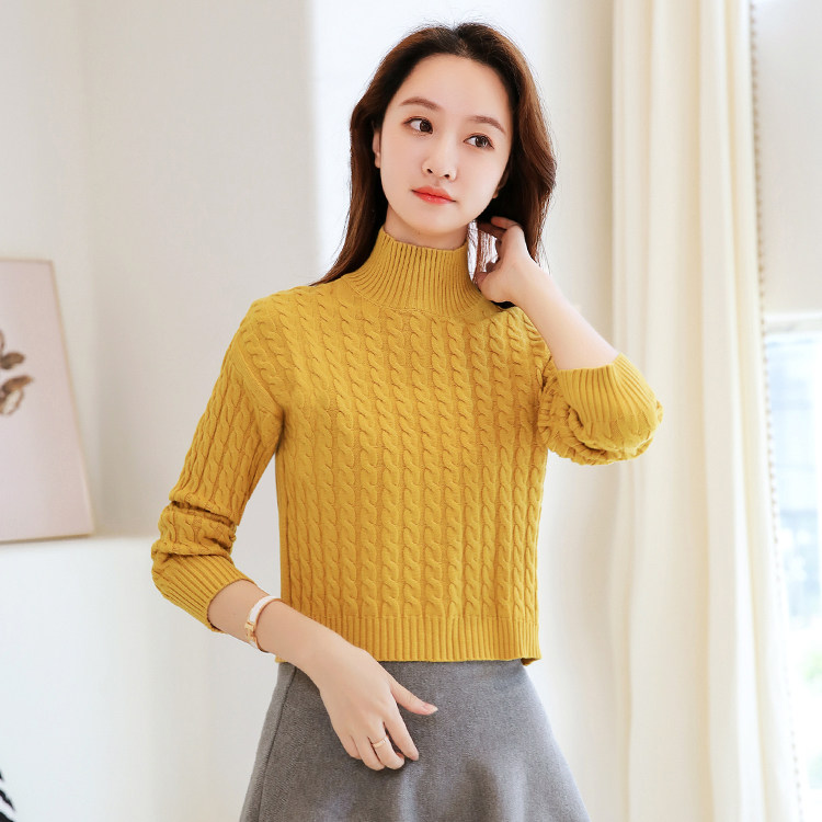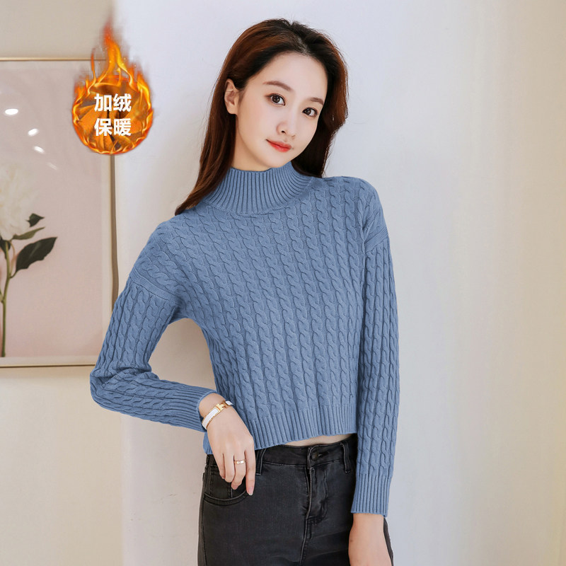 Базовый демисезонный утепленный приталенный трикотажный свитер, коллекция 2021, высокая талия, по фигуре, подходит для подростков, высокий воротник