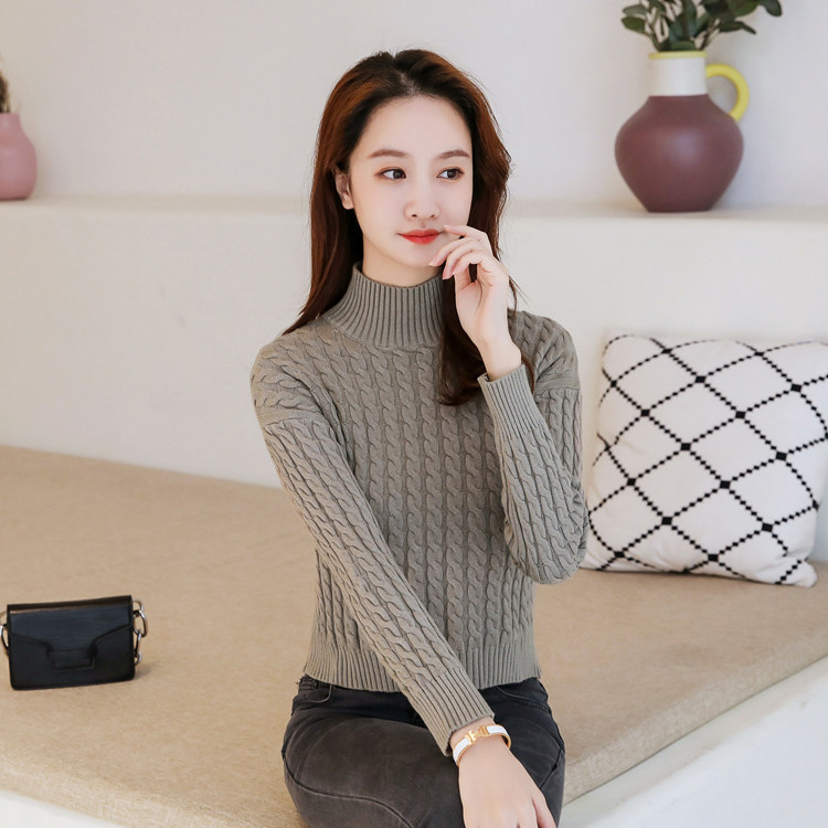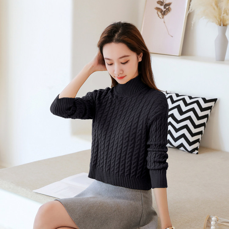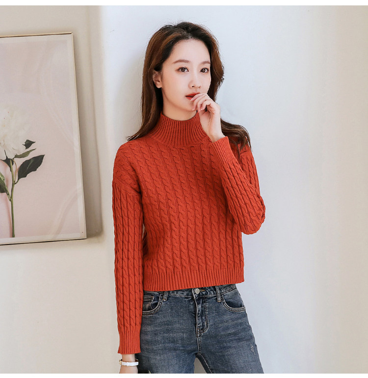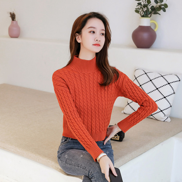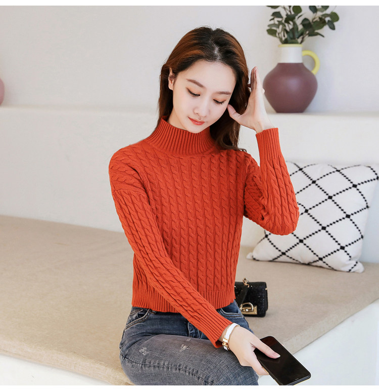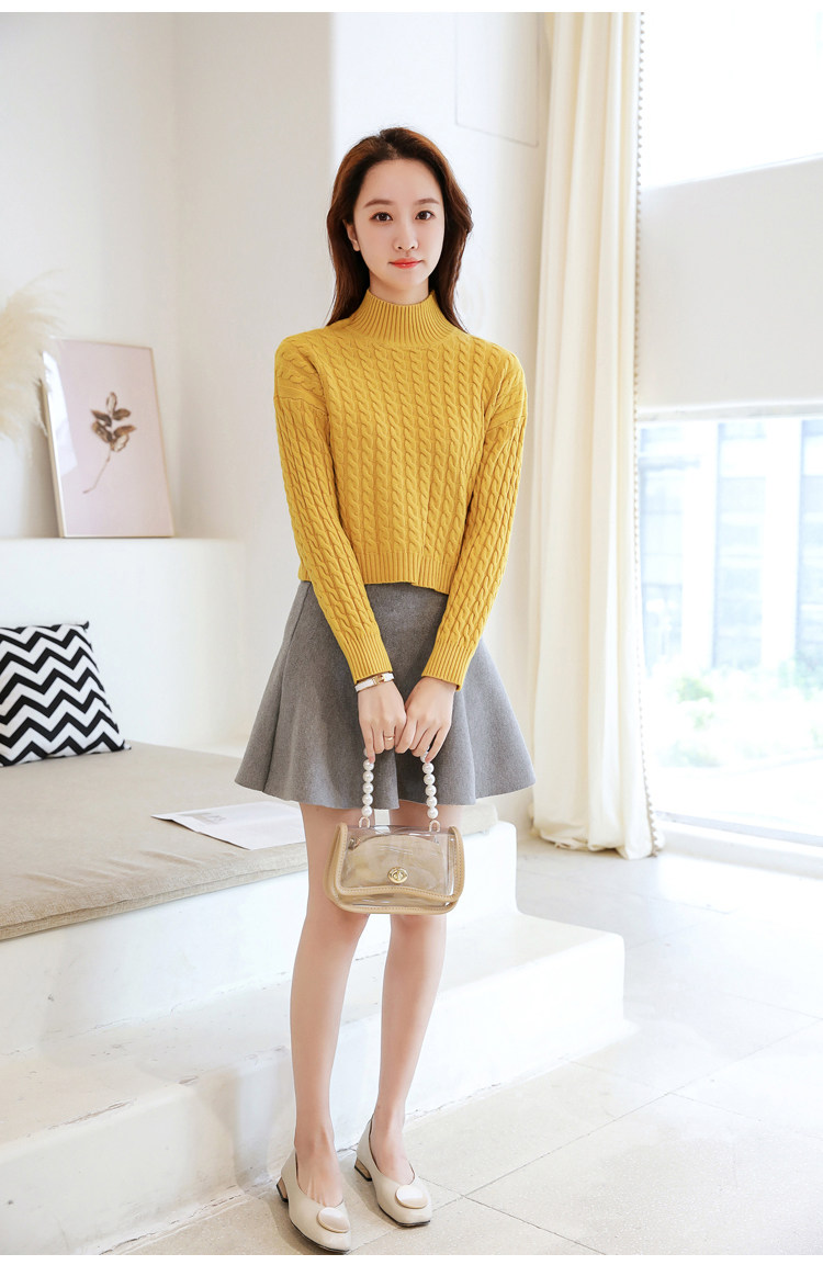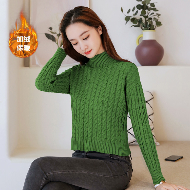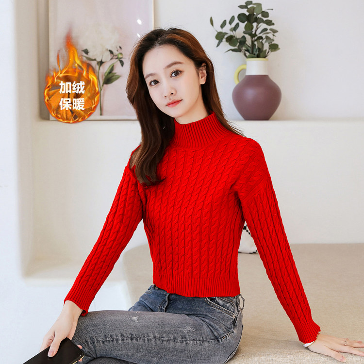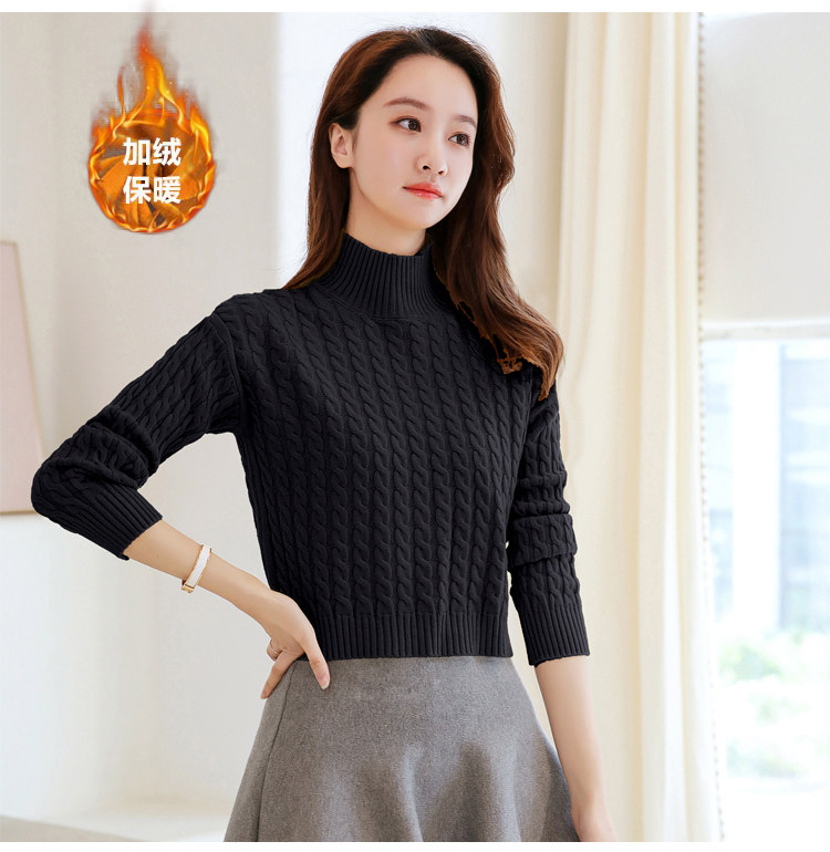 Базовый демисезонный утепленный приталенный трикотажный свитер, коллекция 2021, высокая талия, по фигуре, подходит для подростков, высокий воротник
