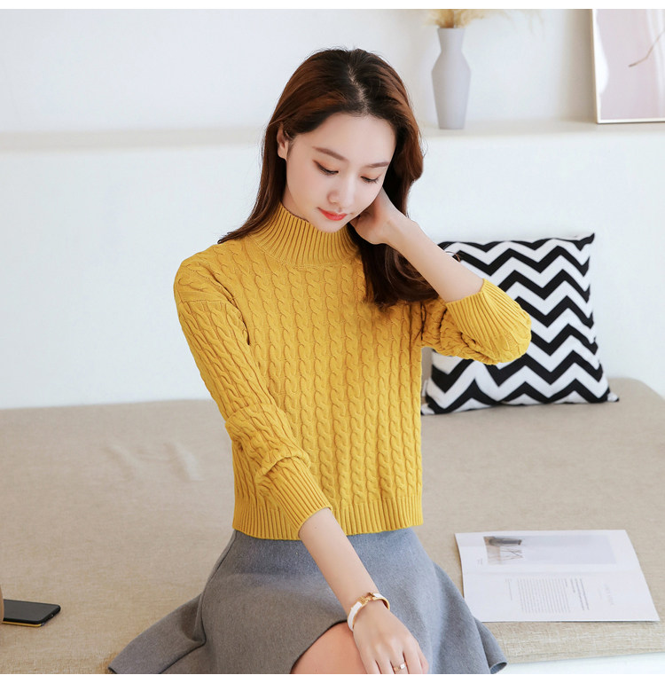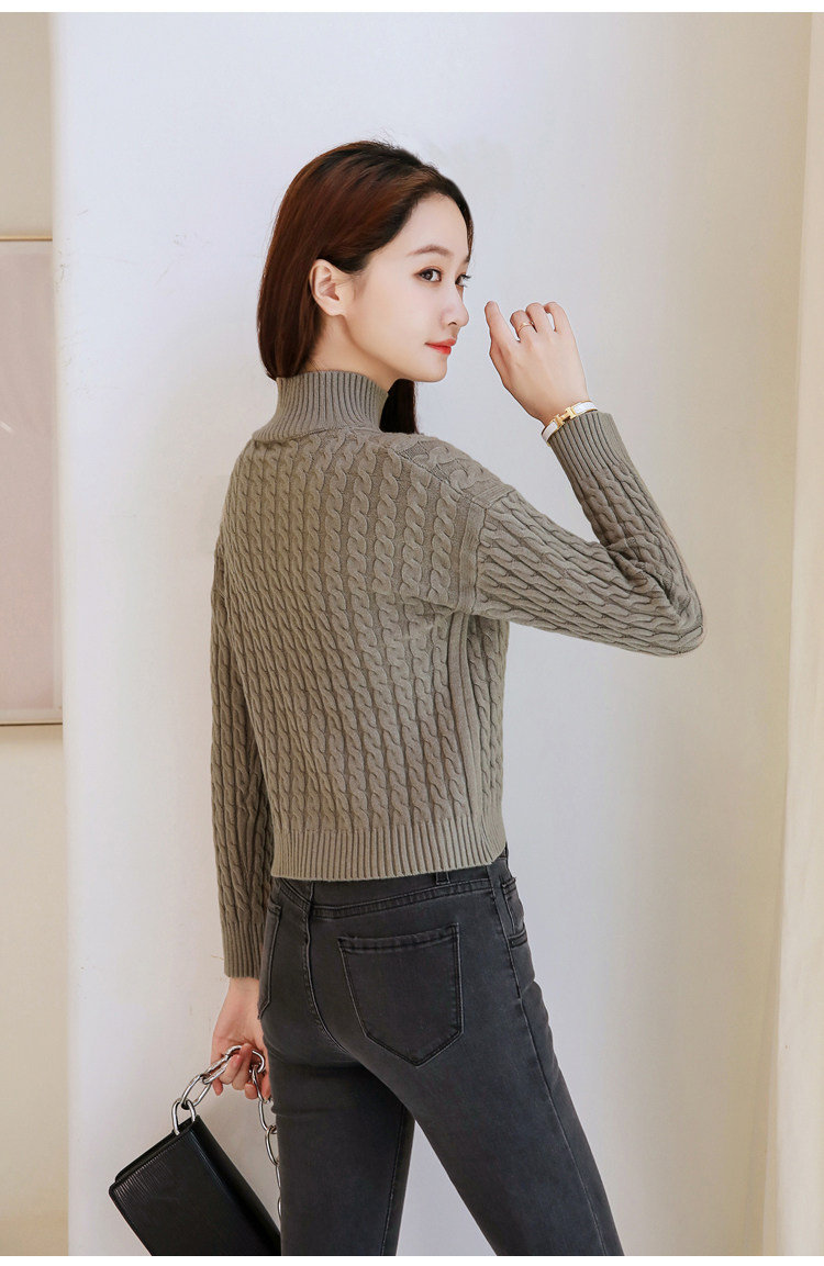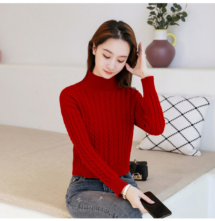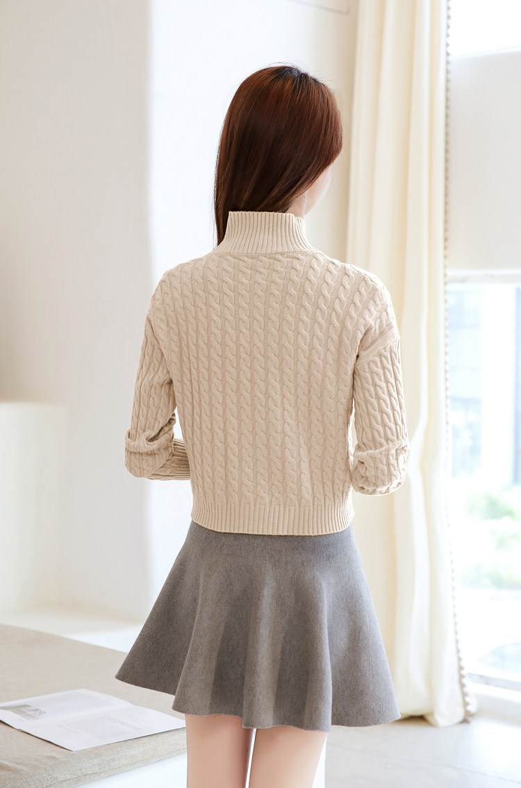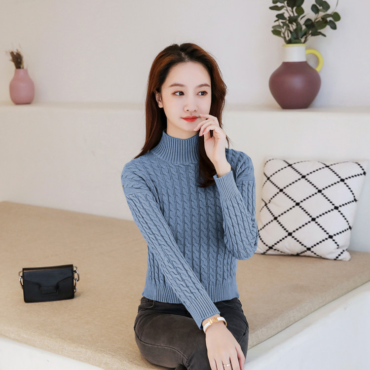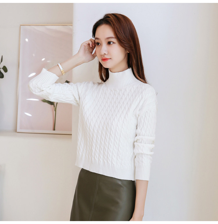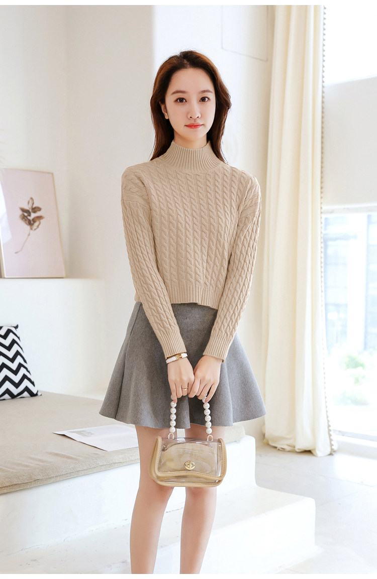 Базовый демисезонный утепленный приталенный трикотажный свитер, коллекция 2021, высокая талия, по фигуре, подходит для подростков, высокий воротник